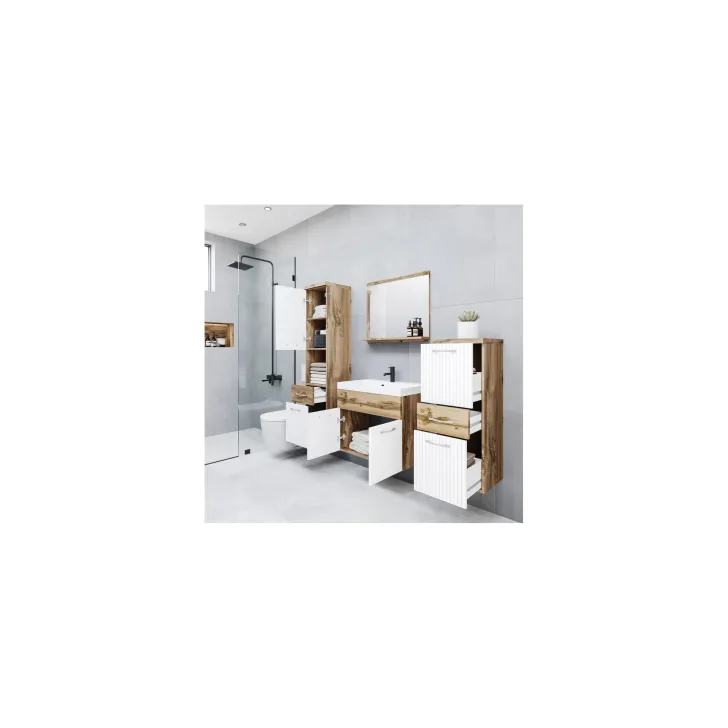 Badezimmermöbel "ALBA" Wotan Eiche / mattweiß, geriffeltes Muster