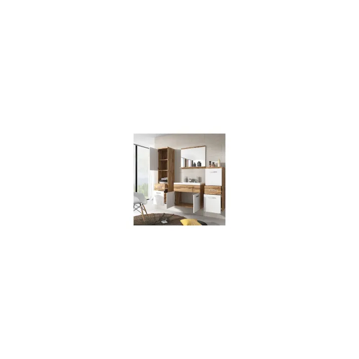 Badezimmermöbel aus Wotan-Eiche mit weißem Hochglanzfinish - ALBA