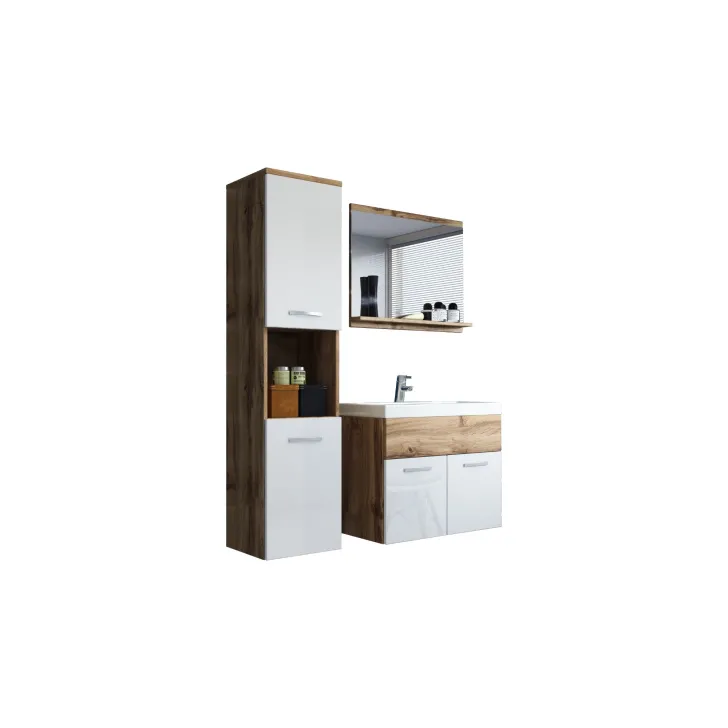 Badezimmermöbel-Set „MONAL“, Wotan-Eiche/Hochglanzweiß