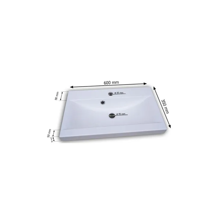 - Waschbecken: Höhe 5 x Breite 60 x Tiefe 35 cm
