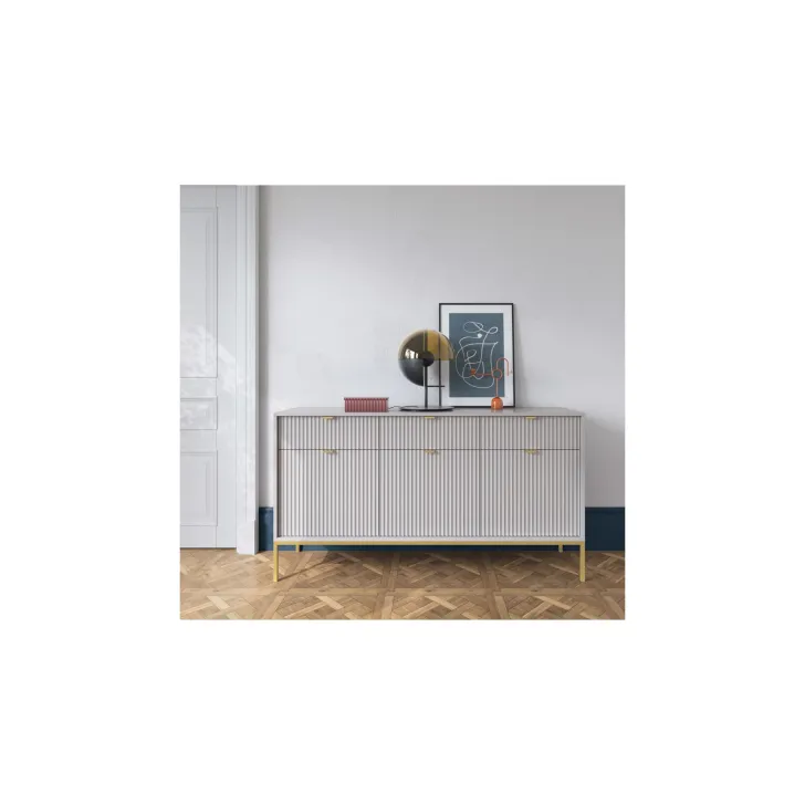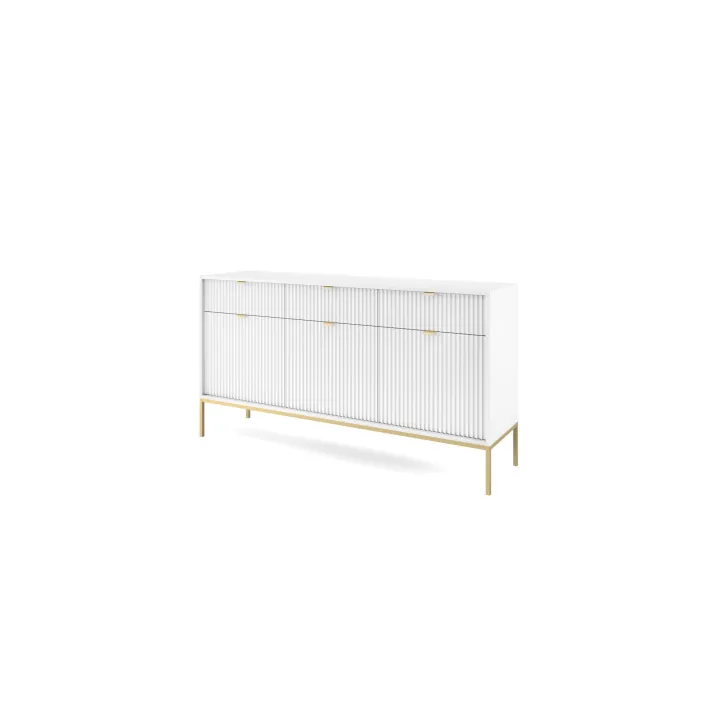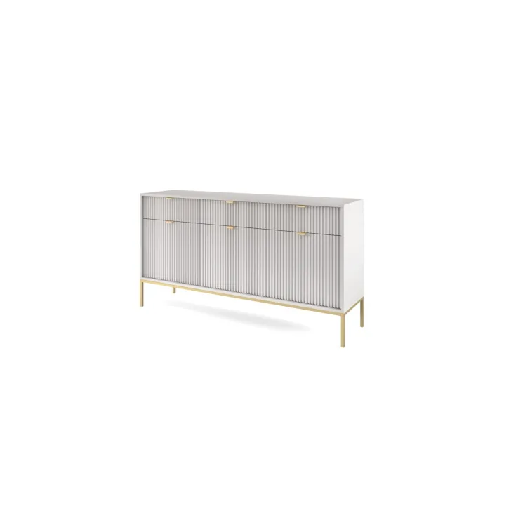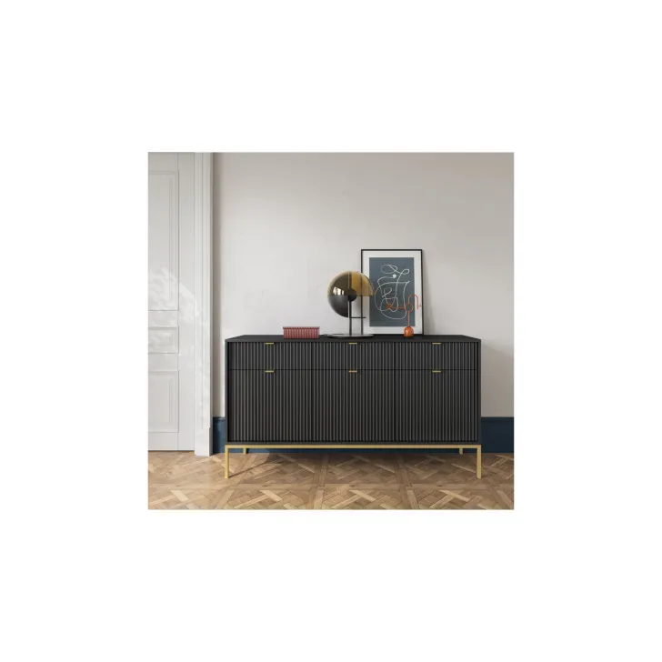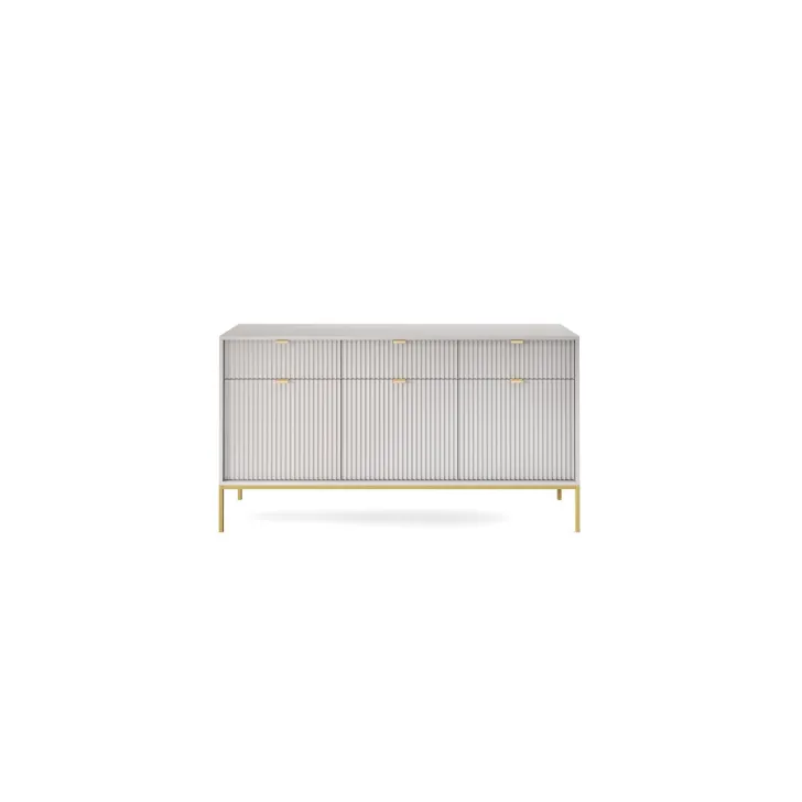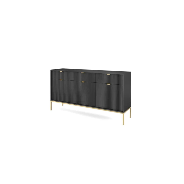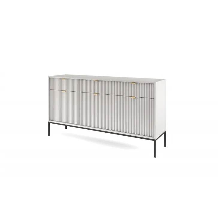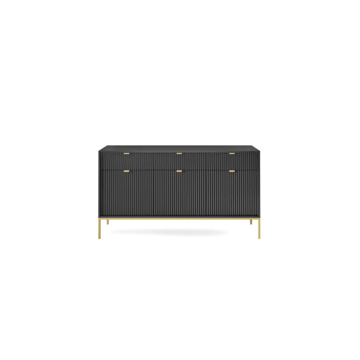 Präsentieren Sie Ihr Zuhause von seiner besten Seite mit der modernen, raffinierten und eleganten Kommode „NOVA“ auf Metallbeinen. Ob im Wohnzimmer oder Schlafzimmer – diese hochwertige Kommode mit Türen und Schubladen vereint Funktionalität mit auffälligem Design.