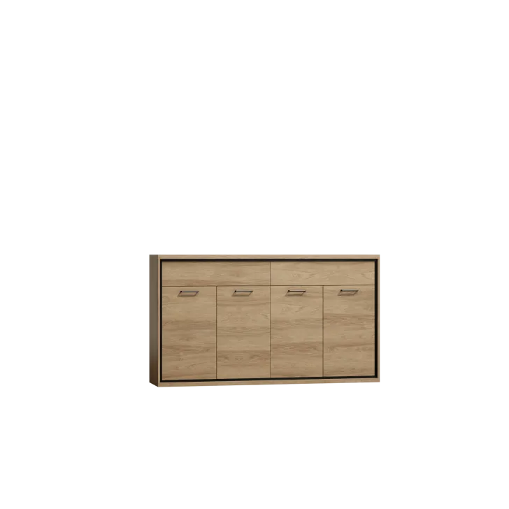 Genau das richtige Möbelstück, um Ihr Zuhause ordentlich und organisiert zu halten. Wenn Sie genervt sind von Dingen, die keinen festen Platz haben, dann bietet diese Kommode die perfekte Lösung. Ausgestattet mit zwei geräumigen Schubladen und vier Türen, hinter denen sich großzügige Fächer verbergen, sorgt sie dafür, dass alles stets aufgeräumt und griffbereit ist – für ein sauberes, harmonisches Wohnumfeld.