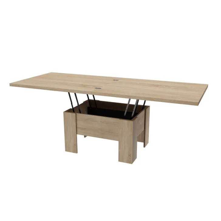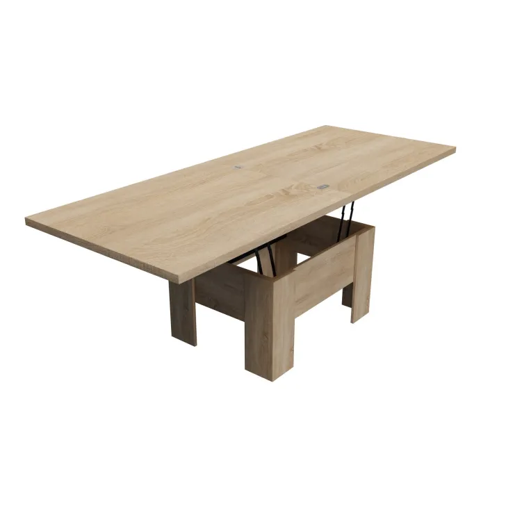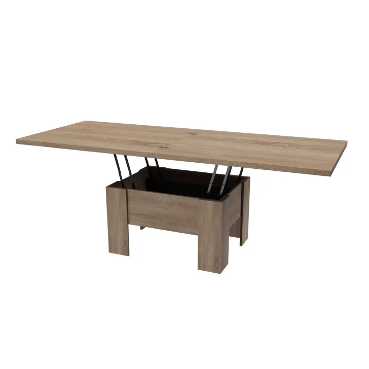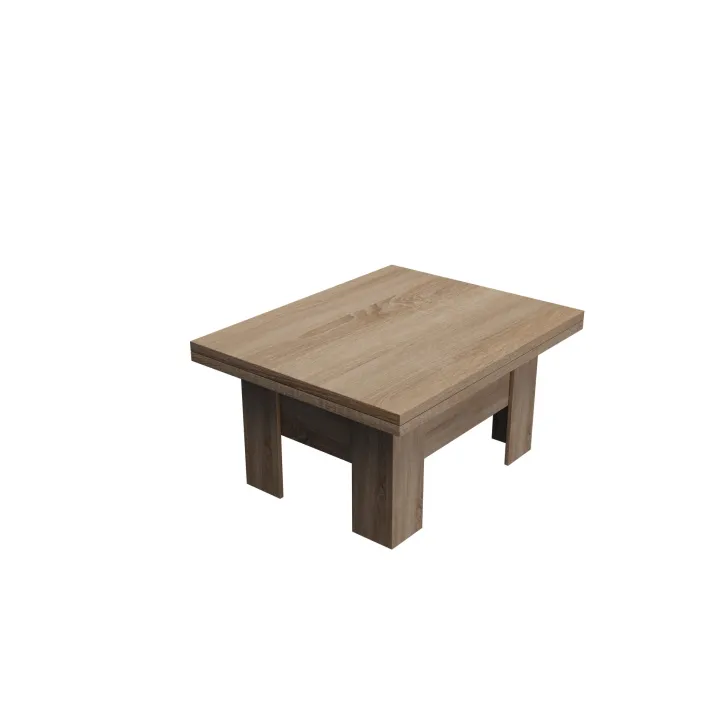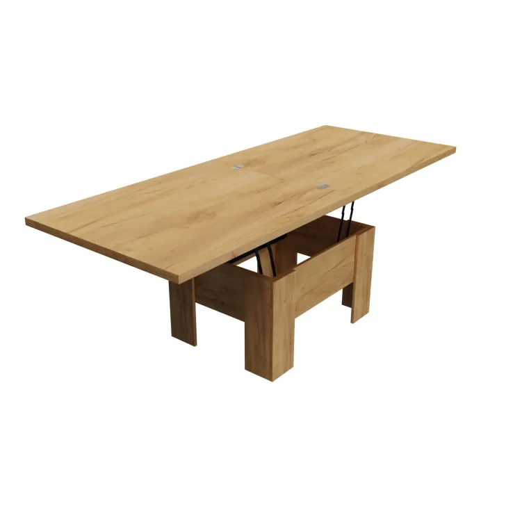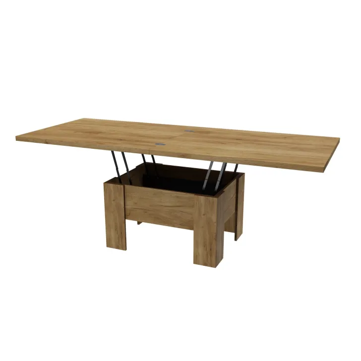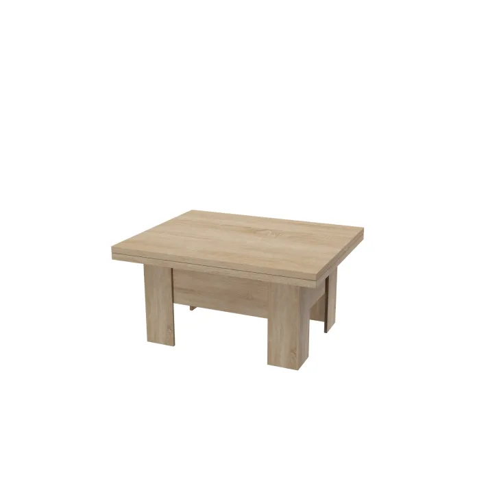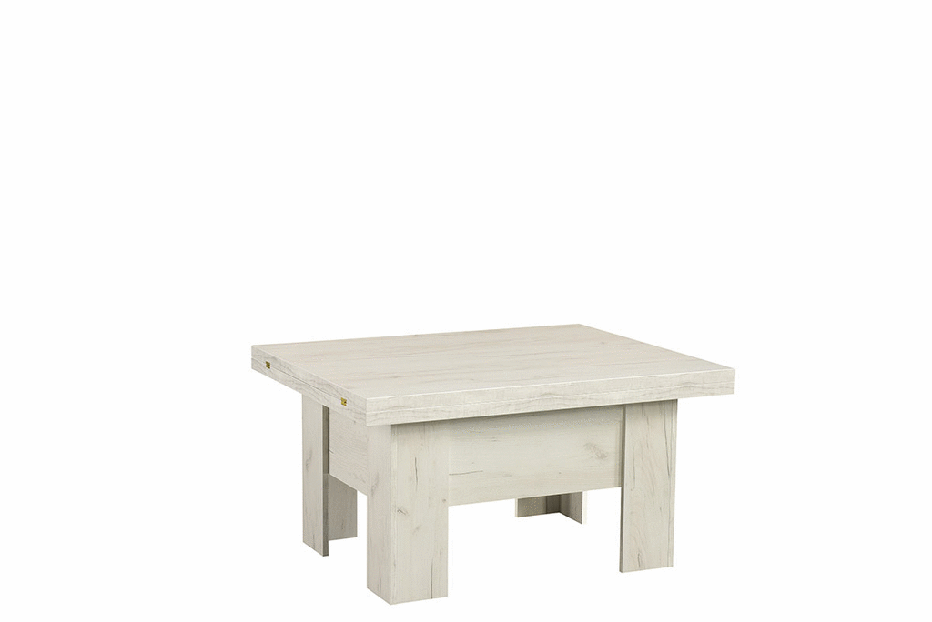 Der Couchtisch "ERYK" überzeugt durch seine ausziehbare Funktion. Im Alltag dient er als gemütlicher Kaffeetisch, doch bei Bedarf lässt er sich im Handumdrehen in einen großen Esstisch mit einer Länge von bis zu 200 cm verwandeln. Der Mechanismus ist einfach zu bedienen, sodass Sie den Tisch ohne großen Aufwand an Ihre Bedürfnisse anpassen können. Unabhängig von der gewählten Nutzung bleibt das elegante Erscheinungsbild des Tisches stets erhalten.
