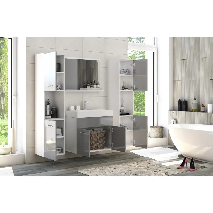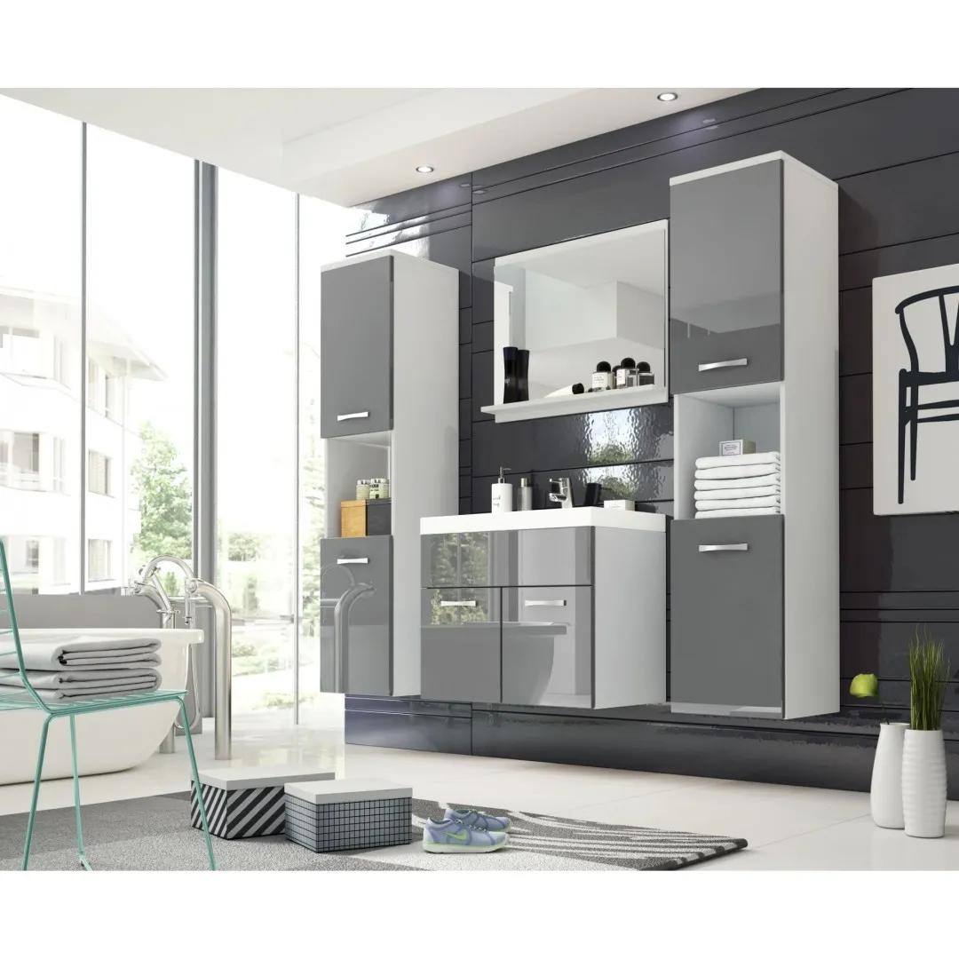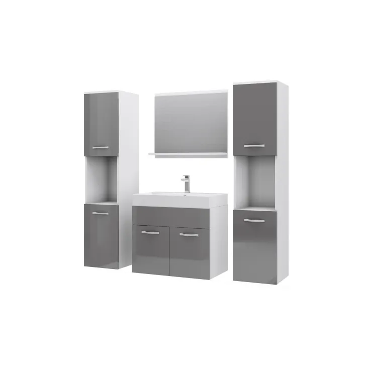 Ein Set Badezimmermöbel in glänzendem Grau - Montreal XL