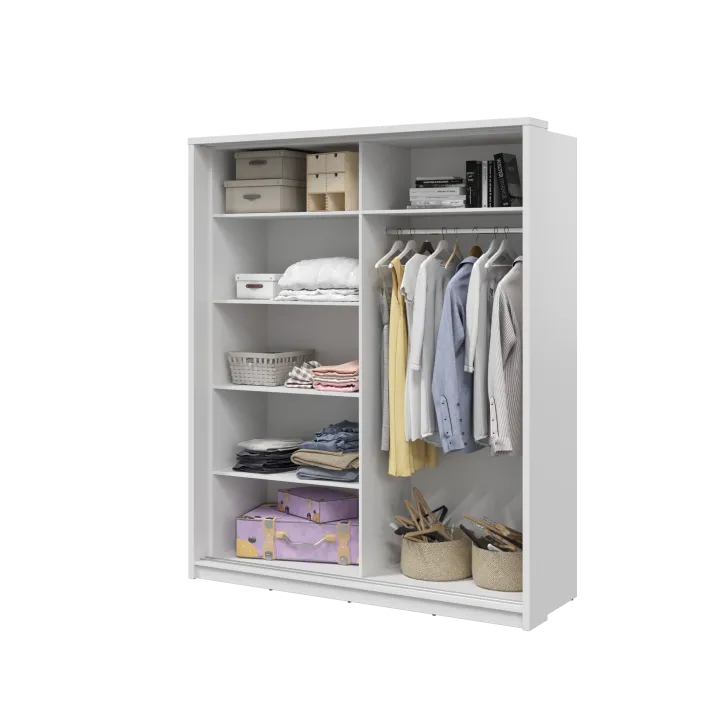Ein gemütlicher Wohnraum erfordert gut durchdachte Aufbewahrungslösungen. Der Kleiderschrank ERTA 25 in Weiß ist die perfekte Wahl für alle, die nicht nur auf praktische, sondern auch auf ästhetische Funktionalität Wert legen. Dieses unverzichtbare Möbelstück vereint Eleganz und Alltagstauglichkeit auf ideale Weise.