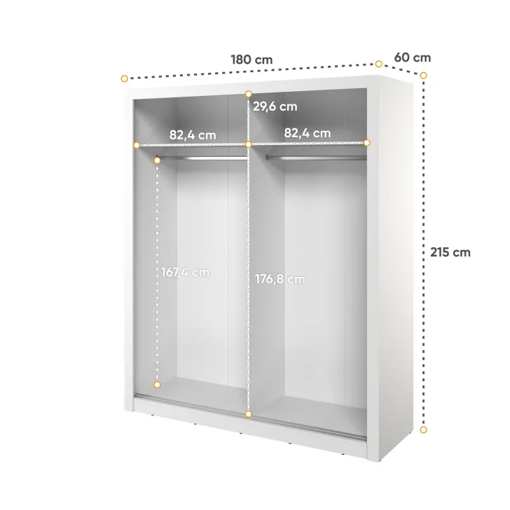 - Die Schranktüren sind Schiebetüren, was einen einfachen Zugang zum Inneren und eine optimale Raumnutzung ermöglicht,