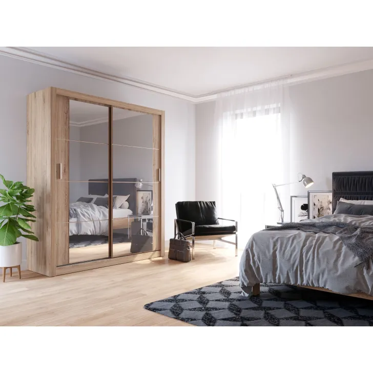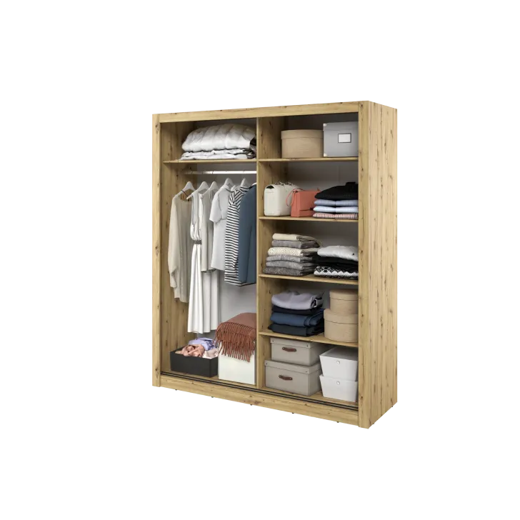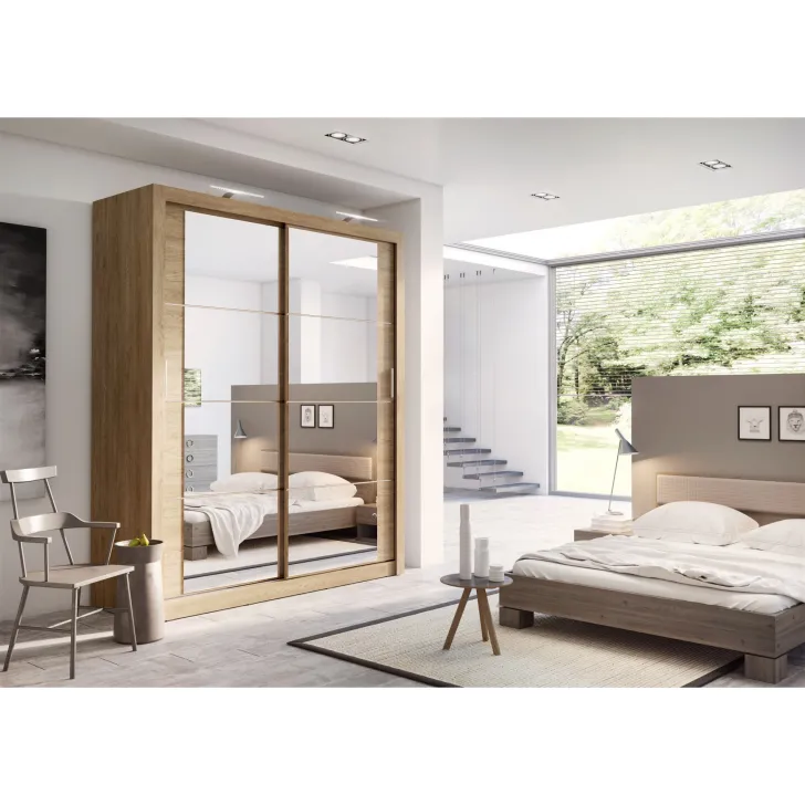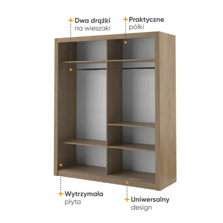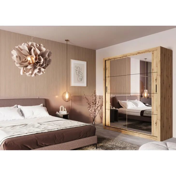 Wir haben darauf geachtet, Funktionalität mit ansprechender Ästhetik zu verbinden, um ein wohnliches und organisiertes Ambiente zu schaffen. Deshalb verfügt der Schrank ERTA 3 über einen integrierten Spiegel an der Tür – er bringt mehr Licht in den Raum, erleichtert die tägliche Kleiderwahl und spart wertvolle Zeit vor dem Verlassen des Hauses.