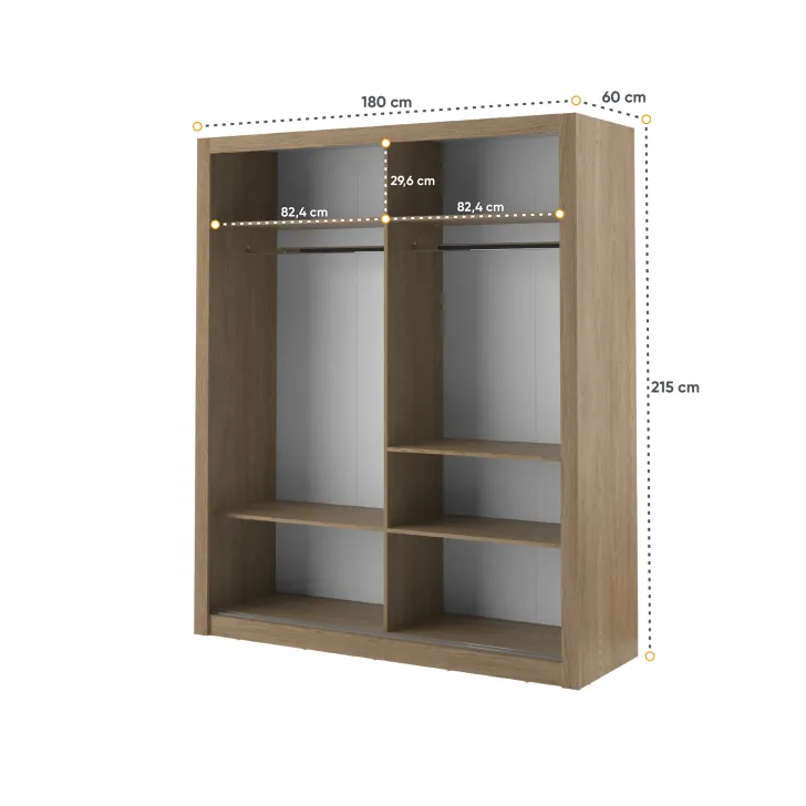 - Maße: 180 x 215 x 60 cm (Breite x Höhe x Tiefe)