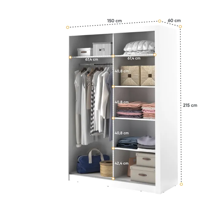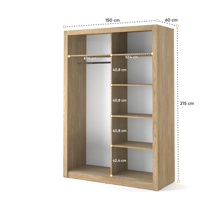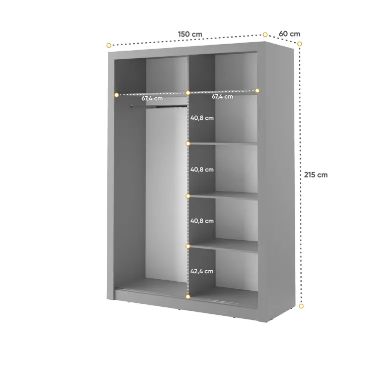 - Maße: 150 x 215 x 60 cm (Breite x Höhe x Tiefe)