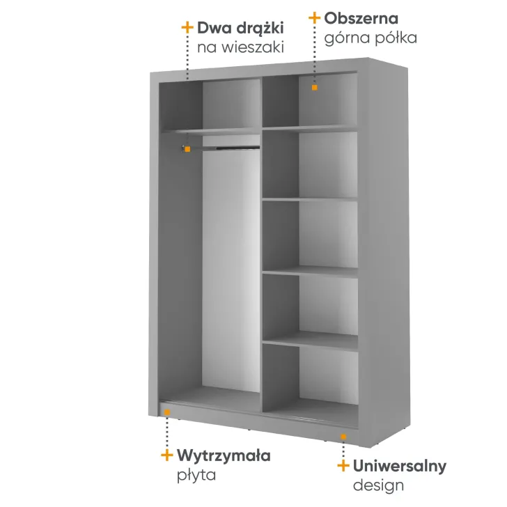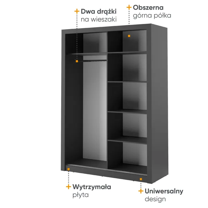 Mit einem ambitionierten Ansatz zur praktischen Ästhetik verkörpert der Kleiderschrank ERTA 4 eine harmonische und ausgewogene Möbelgestaltung. Mit seiner Funktionalität und markanten Form erfreut er das Auge, erfüllt den Bedarf an Stauraum und beeindruckt durch Innovation sowie sorgfältige Verarbeitung. Als integraler Bestandteil moderner und klassischer Inneneinrichtungen fügt sich der Kleiderschrank ERTA 4 perfekt in verschiedenste Wohnräume ein.