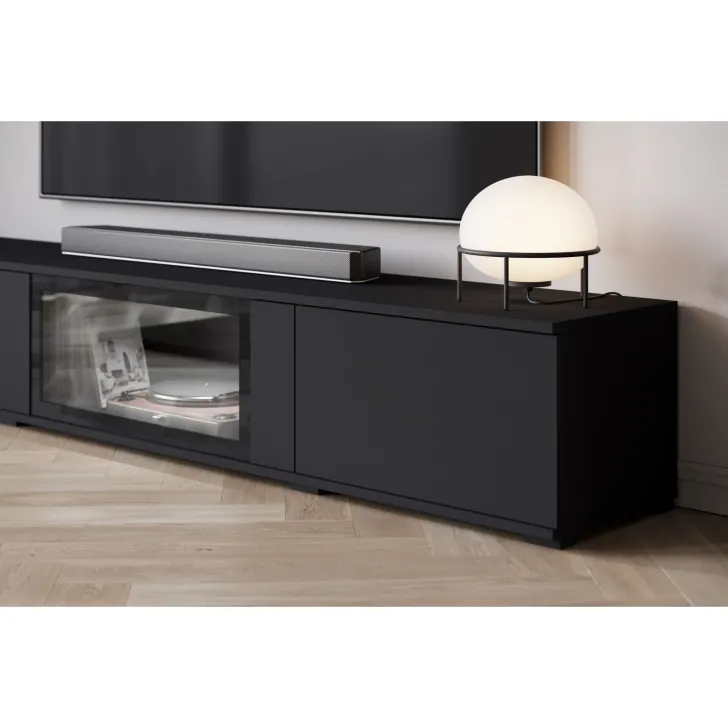 - TV-Schrank: 180 cm (Breite) x 30 cm (Höhe) x 33 cm (Tiefe). Zusätzliche 2 cm Höhe bei Auswahl der stehenden Version.