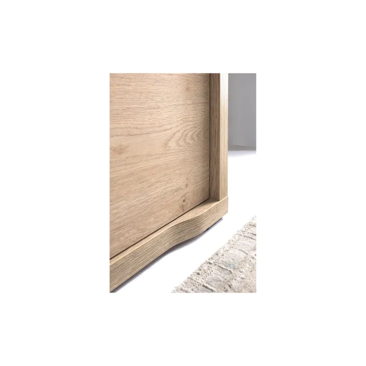 Das Design der Kommode GIFU 1 besticht durch sanft abgerundete Kanten im unteren Bereich sowie dezente Griffe, die den natürlichen Stil der Kollektion GIFU unterstreichen. Der warme Ton der cremona Eiche und die feine Holzstruktur verleihen dem Möbelstück Charme und bringen Ruhe sowie Ordnung in jeden Raum.