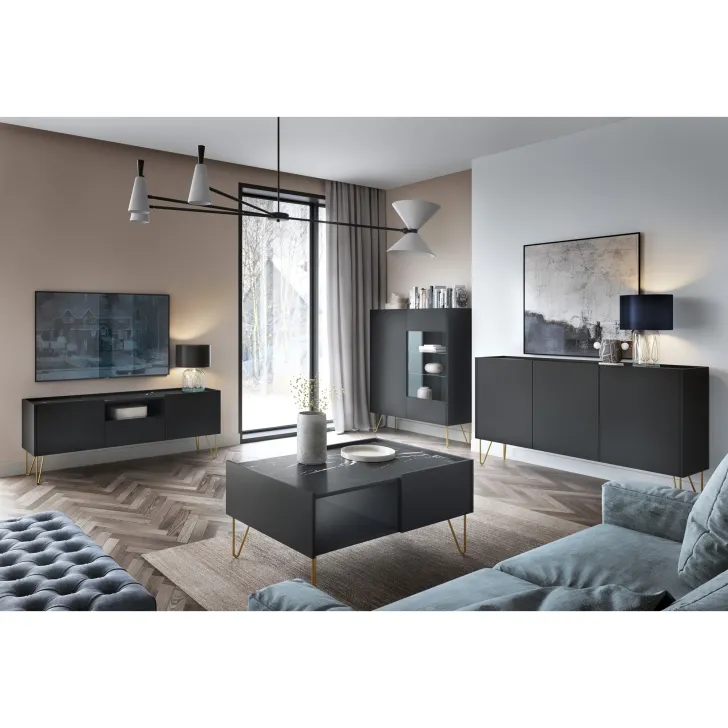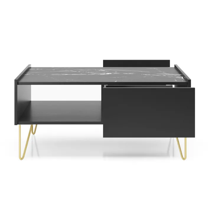Wenn Sie Ihrem Wohnzimmer ein frisches Aussehen verleihen oder auf der Suche nach einem besonders eleganten Möbelstück für Ihr Interieur sind, ist unser Couchtisch Haga die perfekte Wahl. Die Designer haben klassische Eleganz mit modernem Design kombiniert und so ein Möbelstück geschaffen, das sich mühelos in die meisten Einrichtungsstile einfügt. Die raffinierte Farbkombination aus Graphitschwarz und königlichem Marmor-Schwarz unterstreicht den einzigartigen Charakter dieses Tisches.