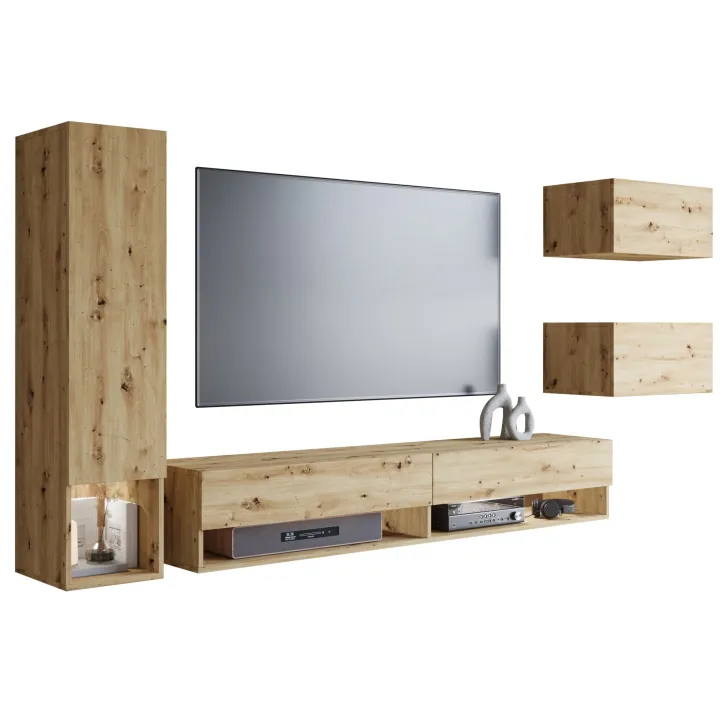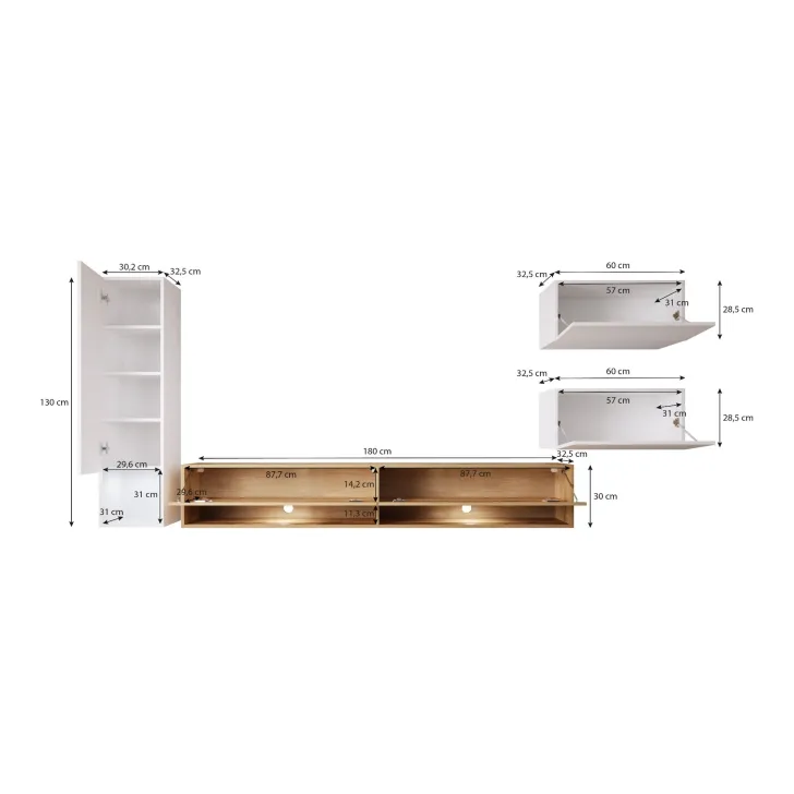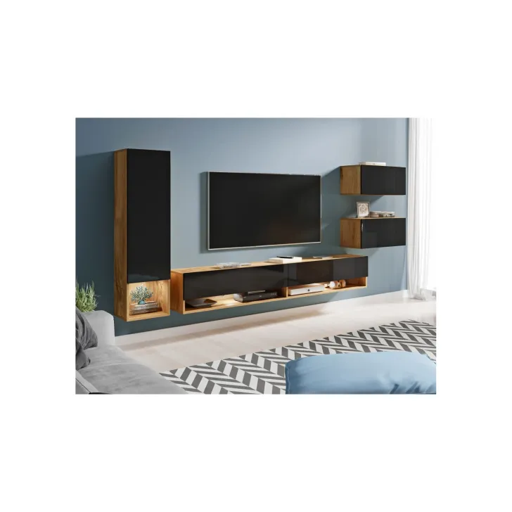Lassen Sie sich von der Schönheit und Funktionalität der hängenden Wohnwand AMY I verzaubern. Wählen Sie die Farbe aus den verfügbaren Varianten: Weiß, Artisan Eiche, Schwarz, Graphit Matera/Weiß, Wotan Eiche, Wotan Eiche/Weiß, Wotan Eiche/Schwarz Hochglanz und entscheiden Sie, ob Sie LED-Beleuchtung hinzufügen möchten. Stellen Sie sich Ihren Traum-Ruheort mit der hängenden Wohnwand AMY I zusammen!