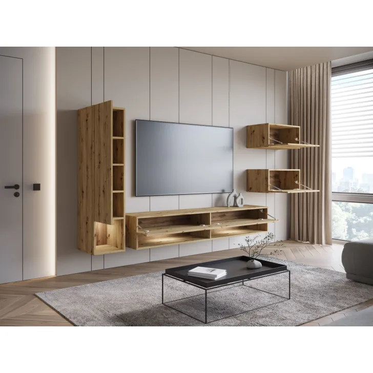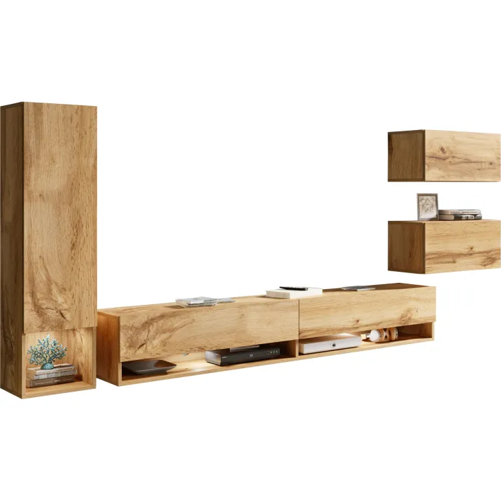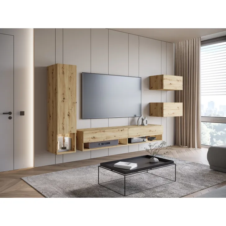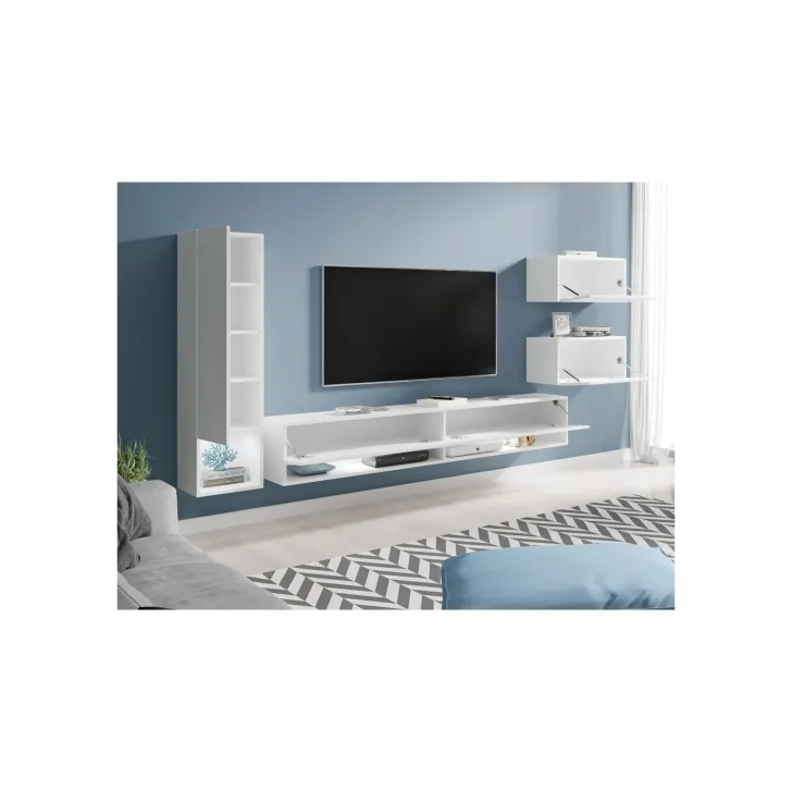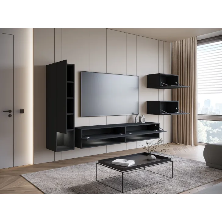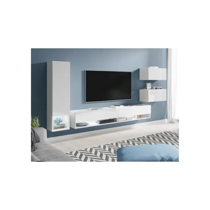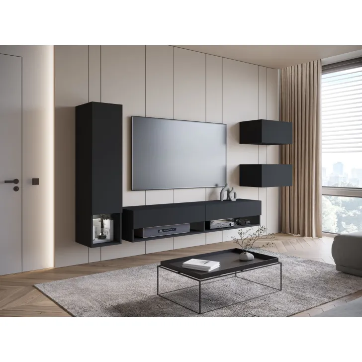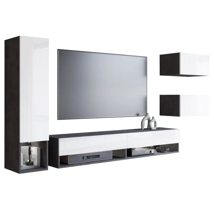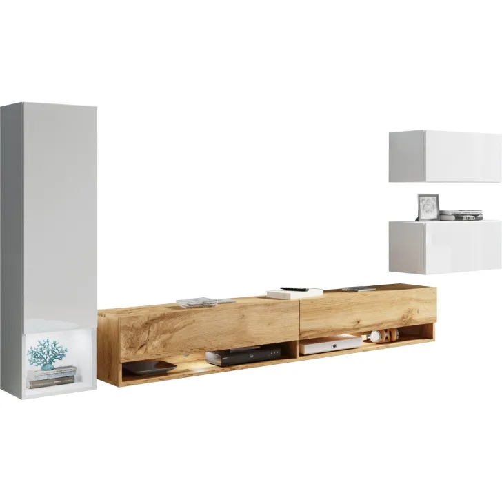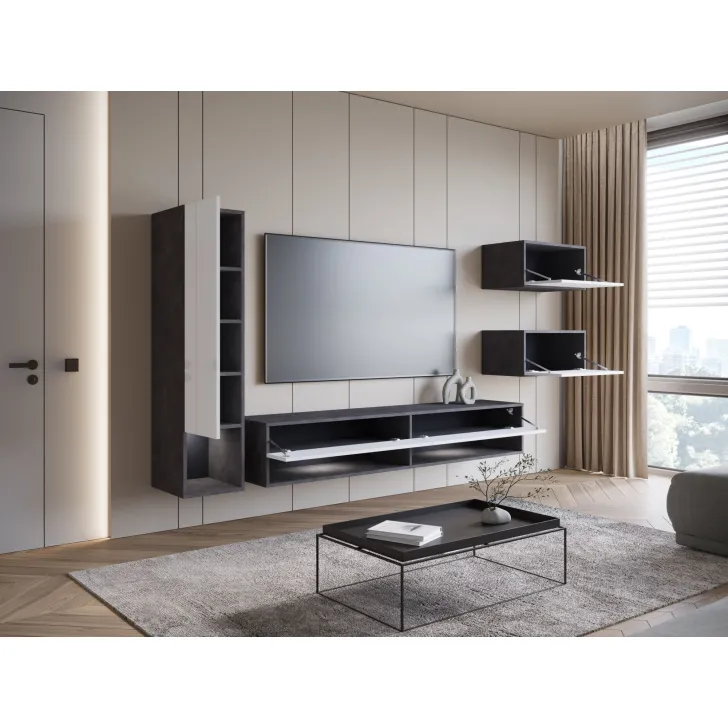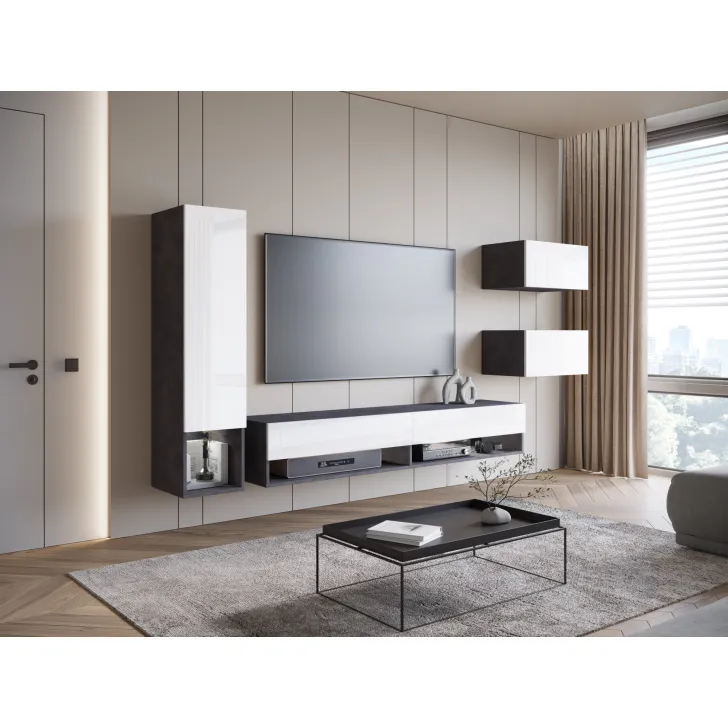 Wenn Sie auf der Suche nach einem modernen, funktionalen Möbelstück für Ihr Wohnzimmer sind, haben wir die ideale Lösung für Sie. Wir präsentieren die hängende Wohnwand AMY I. Dieses moderne Möbelstück wird nicht nur das Aussehen Ihres Wohnzimmers dynamisch verändern, sondern bietet auch viele Konfigurations- und Aufbewahrungsmöglichkeiten.