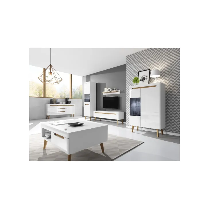 - Erhältlich in zwei Farben: Weiß Hochglanz/Eiche Riviera oder Eiche Artisan