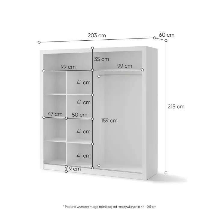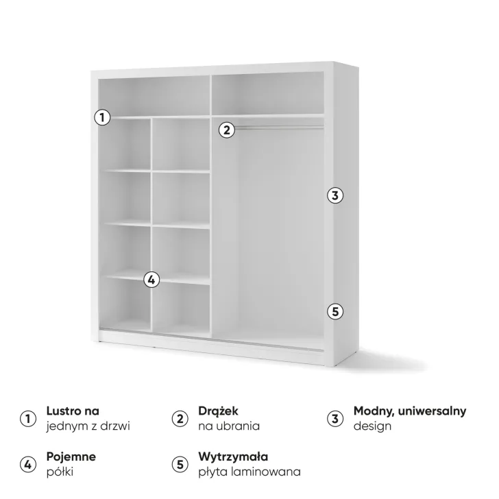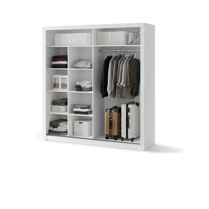 Der Kleiderschrank JADIA 12 in Weiß erfüllt die Erwartungen selbst der anspruchsvollsten Liebhaber funktionaler und ästhetischer Innenraumlösungen. Dieser geräumige Schrank aus der JADIA-Kollektion ist nicht nur ein unverzichtbares Einrichtungselement, sondern überzeugt auch durch seinen stilvollen Look, der jedem Raum Eleganz verleiht. Wenn die Aufbewahrung von Kleidung und Accessoires zur Herausforderung wird, bietet der Kleiderschrank JADIA 12 weiß die perfekte Lösung. Dank seiner durchdachten Konstruktion und großzügigen Aufteilung bewahrt er Ordnung und Übersicht im Zuhause. Das minimalistische Design und die universelle Farbgebung machen ihn zur idealen Wahl für moderne wie klassische Einrichtungsstile.