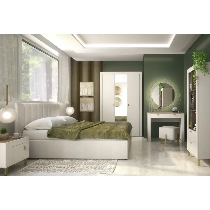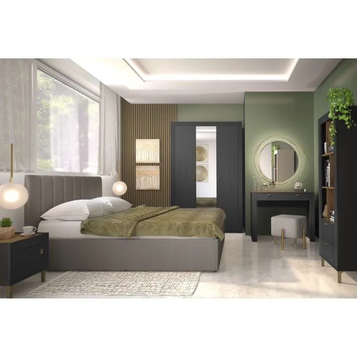 Der praktische und elegante Spiegel an der Vorderseite des Schranks ist nicht nur eine funktionale Lösung, sondern auch ein Designelement, das den Raum optisch vergrößert. Der Spiegel ermöglicht Ihnen zudem eine schnelle Überprüfung Ihres Outfits und eine gute Abstimmung der Accessoires.