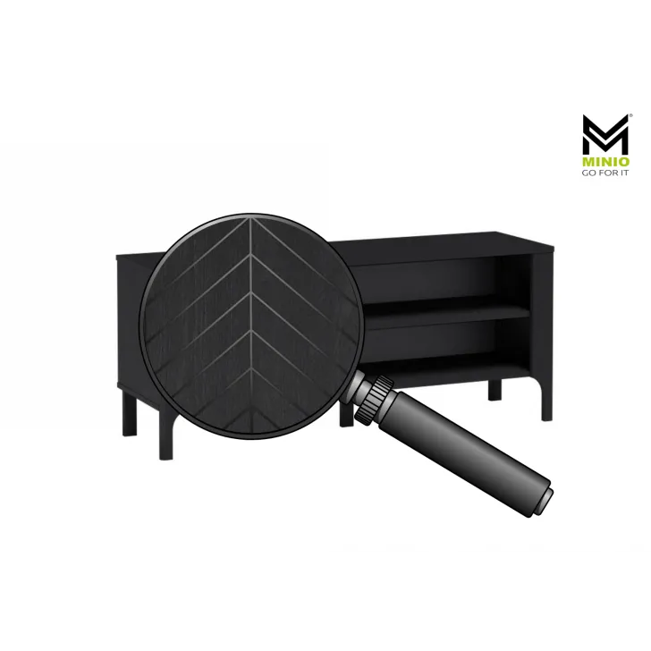 Überzeuge dich selbst von der Qualität der hochwertigen laminierten Platte, aus der der Schrank gefertigt ist. Die Fronten mit Fischgrätmuster verleihen dem Raum Wärme und eine elegante Note. Die schlanken, aber stabilen Beine sorgen für Leichtigkeit und gleichzeitig für hohe Stabilität der gesamten Konstruktion.