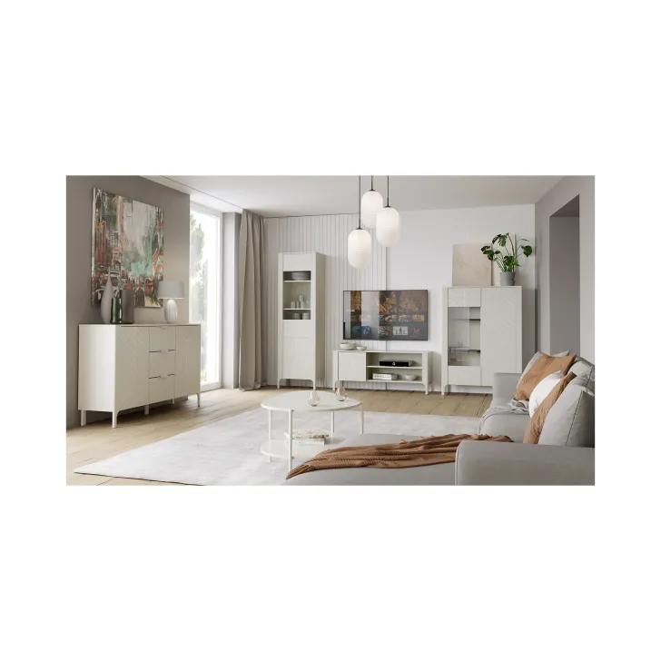 Der TV-Schrank "MONZA" 6 beweist, dass hohe Verarbeitungsqualität und innovative Lösungen perfekt mit attraktivem Design harmonieren können. Sorge für Ordnung und Stil in deinem Wohnzimmer – mit diesem funktionalen und eleganten Möbelstück.