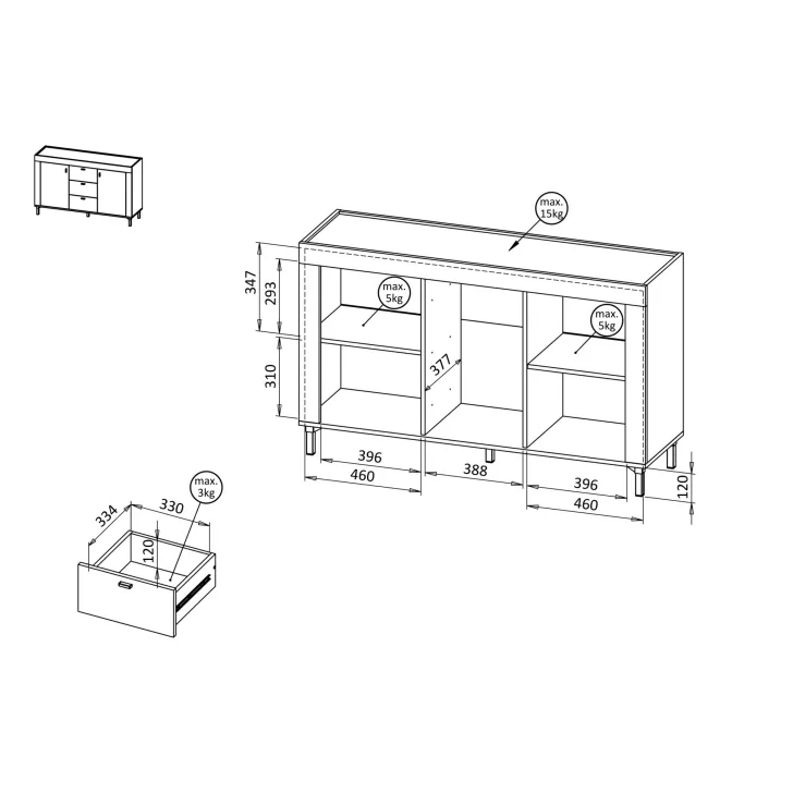 - Modernes Design: Die Kombination aus moderner Holzoptik im Inneren und auf der Oberplatte mit gedeckten Farben verleiht der Kommode einen zeitgemäßen, raffinierten Stil.