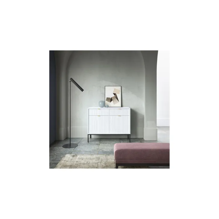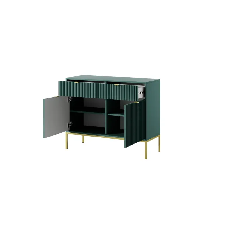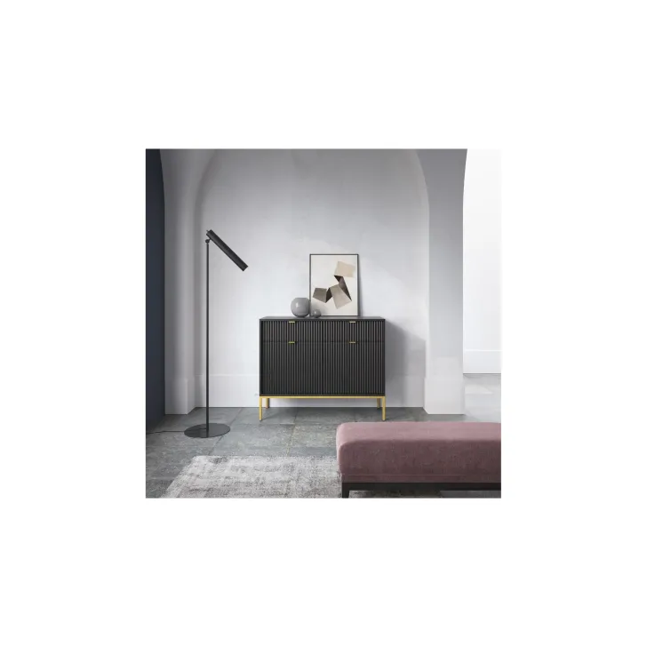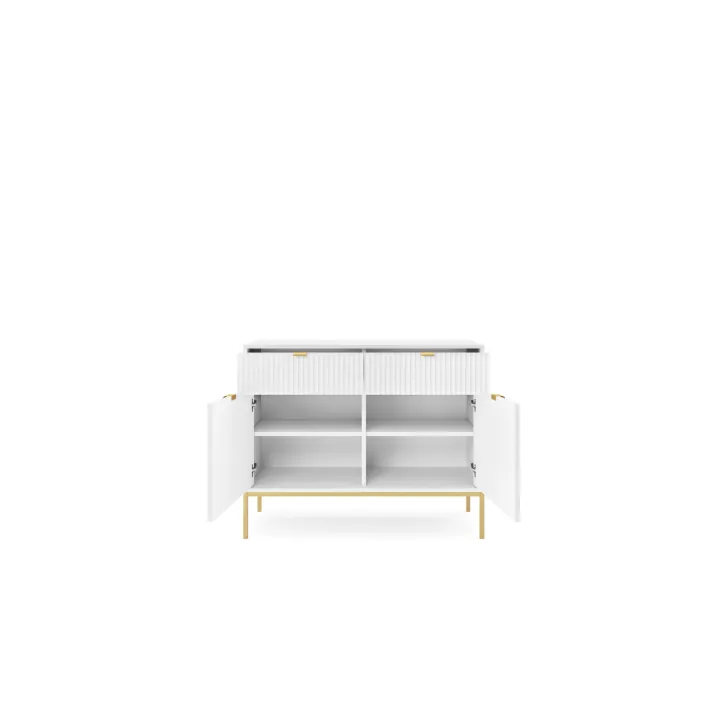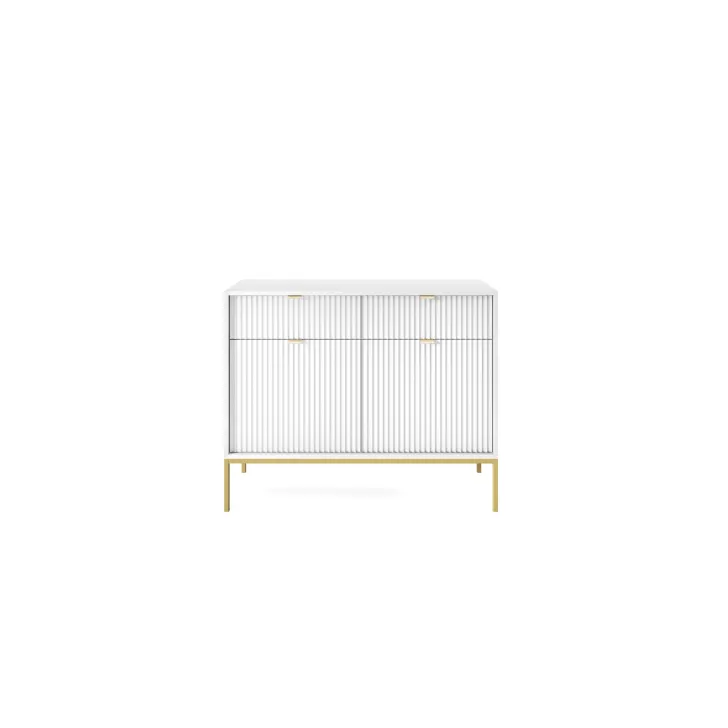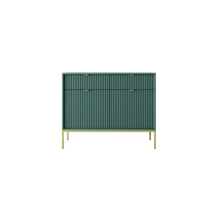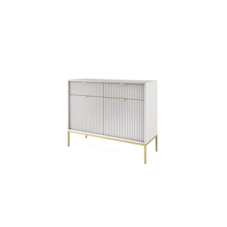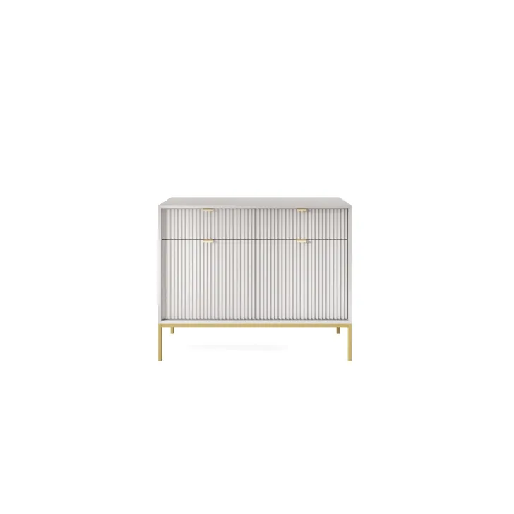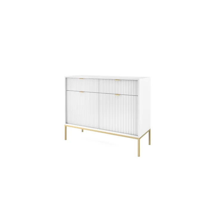 Die Kommode „NOVA“ wurde mit Blick auf höchste Ansprüche an Langlebigkeit und Ästhetik entwickelt. Die Herstellung aus robuster, laminierter Platte sorgt für eine besonders kratzfeste und widerstandsfähige Oberfläche. Zusätzlich sind die seitlichen Kanten mit ABS-Kantenband versehen, was eine langfristige Nutzung ohne sichtbare Gebrauchsspuren garantiert. Die stabilen Metallbeine verleihen der Kommode moderne Eleganz und sichern zugleich festen Stand.