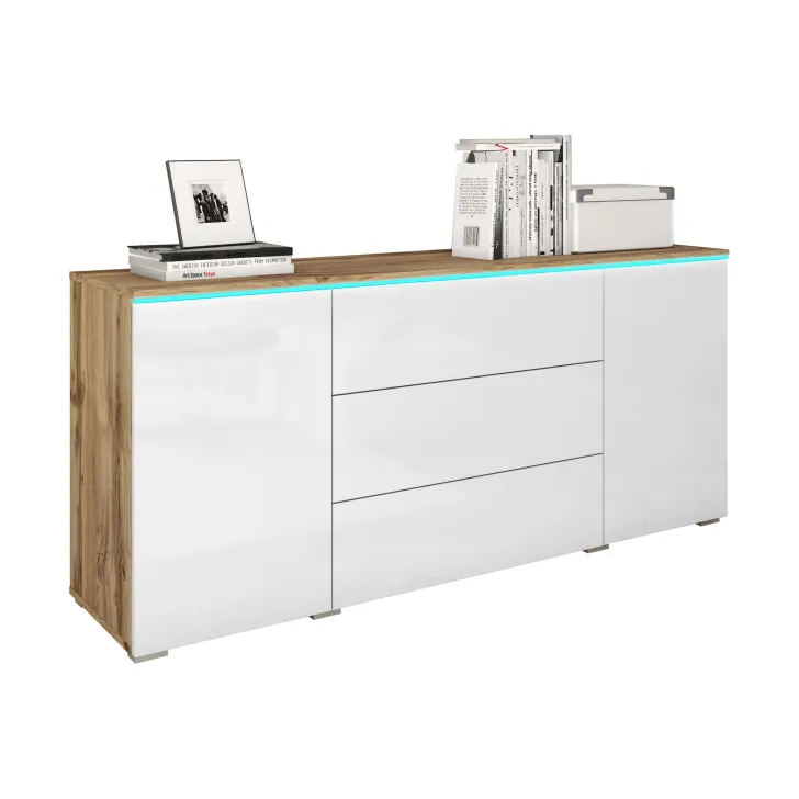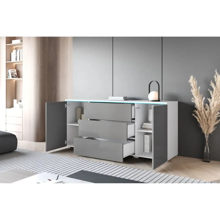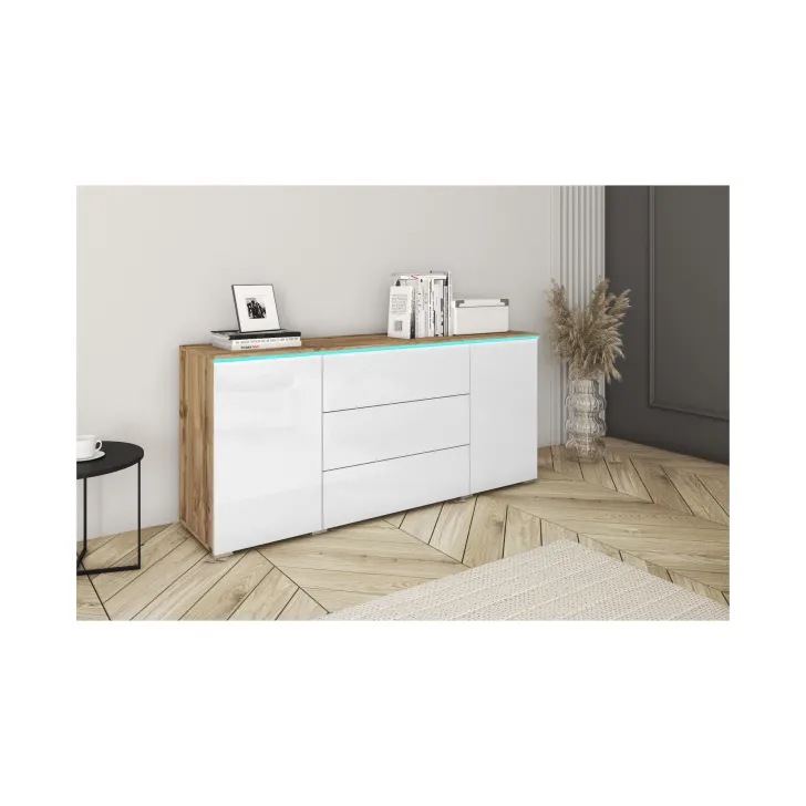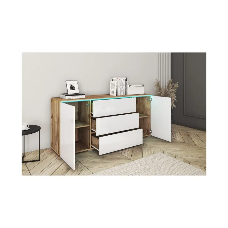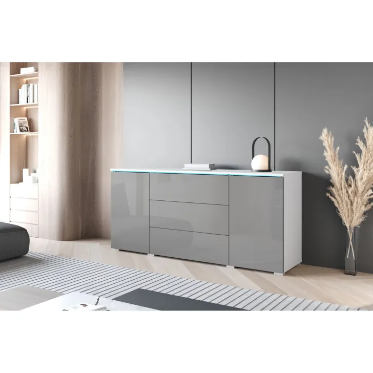 Das besondere Design der Kommode „VEVE“ 150 cm wird durch eine breite Farbpalette ergänzt, die sich perfekt in verschiedene Einrichtungsstile integrieren lässt. Verfügbare Farbkombinationen: