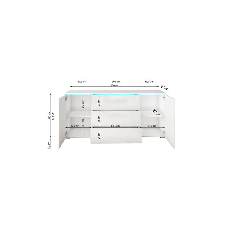 Maße der Kommode „VEVE“ 150 cm mit Schubladen: