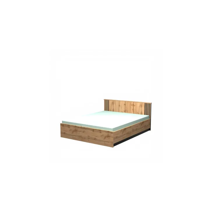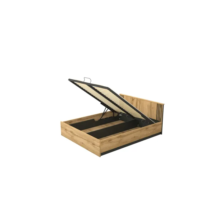 Maße Bett Lamia, Liegefläche 160x200, ohne Matratze, mit Bettkasten, MDF-Leisten, Farbe Eiche Wotan/Schwarz Matt:
