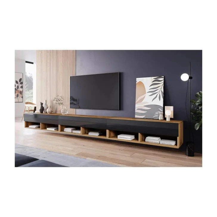Mit der Präsentation des langen TV-Schranks „ANNE“ entdecken wir das wahre Verständnis modernen Innendesigns. Die Designer dieser innovativen Lösung haben jedes Detail durchdacht, um diesen TV-Schrank nicht nur funktional, sondern auch zu einem beeindruckenden Blickfang in Ihrem Zuhause zu machen. Sein unverkennbarer Vorteil ist die Front in Hochglanzoptik, die dem Möbelstück Ausdruckskraft und Eleganz verleiht.