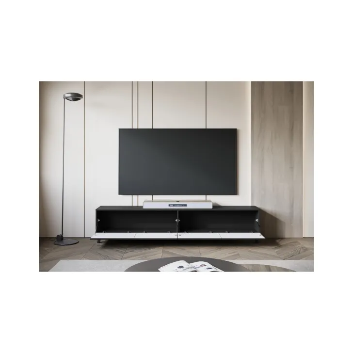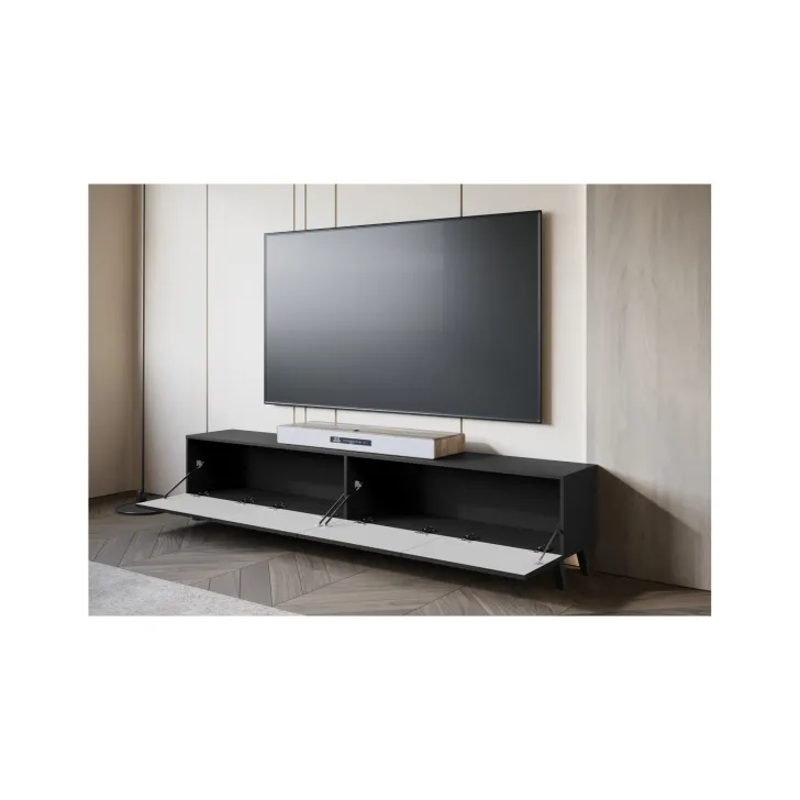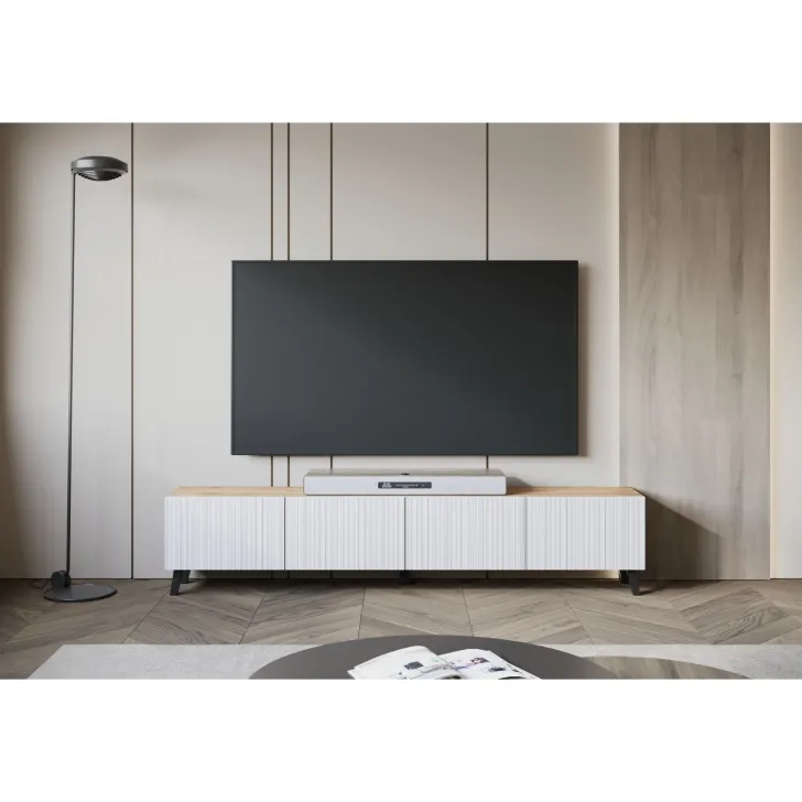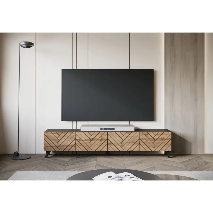 Entdecken Sie den vollen Stil mit unserem langen TV-Lowboard „LOKET“ 190 cm – ideal für alle, die Funktionalität, Komfort und modernes Design schätzen. Gefertigt aus hochwertiger laminierter Platte, überzeugt dieses Möbelstück durch seine Langlebigkeit und seinen einzigartigen Look.