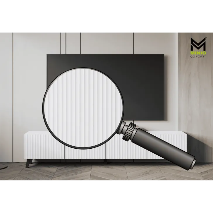 Die LOKET-TV-Kommode ist in mehreren Farben und Designs erhältlich, sodass sie sich harmonisch in nahezu jedes Interieur einfügt. Die breite Oberseite eignet sich ideal zur Präsentation von Deko-Elementen und verleiht dem Raum eine persönliche Note.