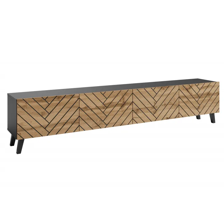 Langer TV-Schrank „LOKET“, 190 cm, MDF-Front mit 3D-Muster