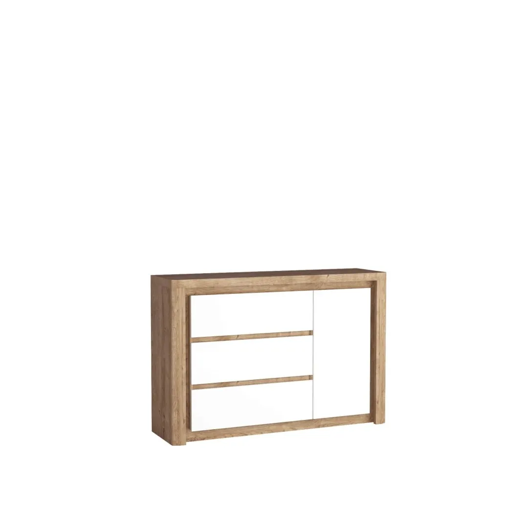 LIVIO Kommode, Ribbeck-Eiche/Hochglanzweiß