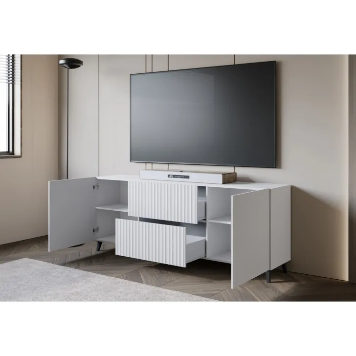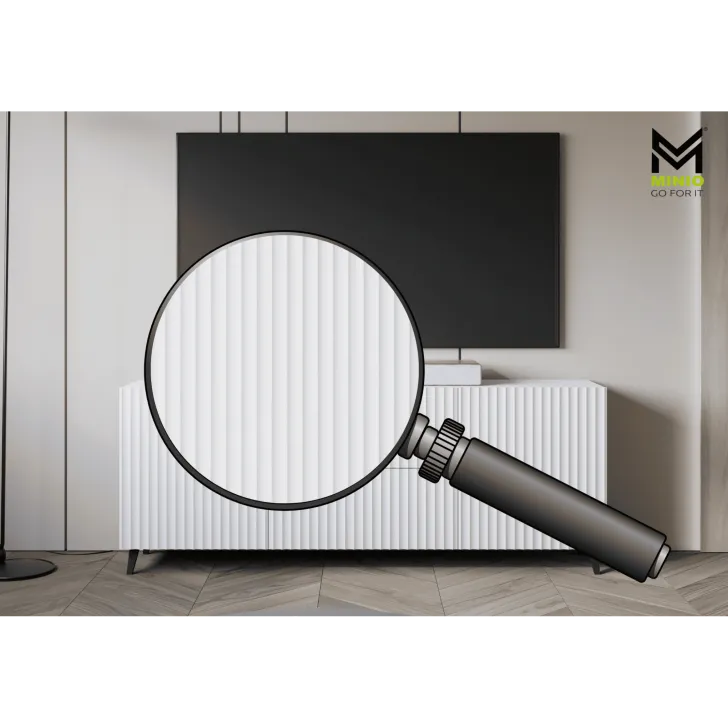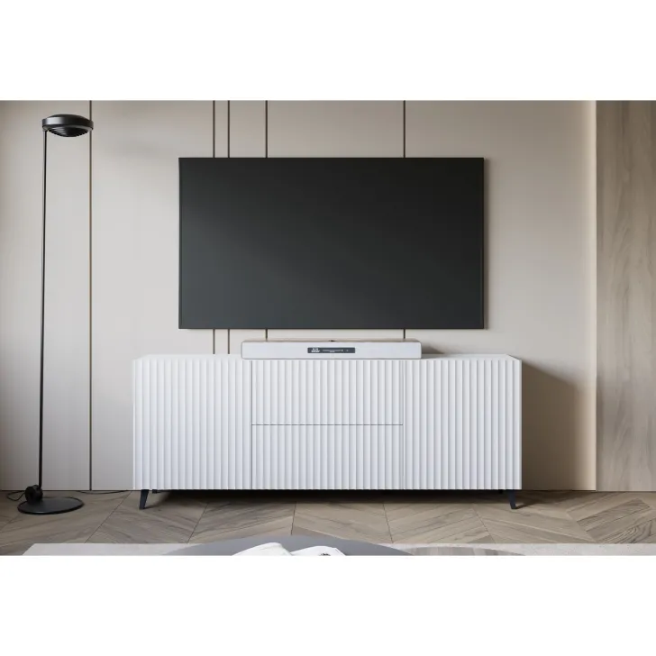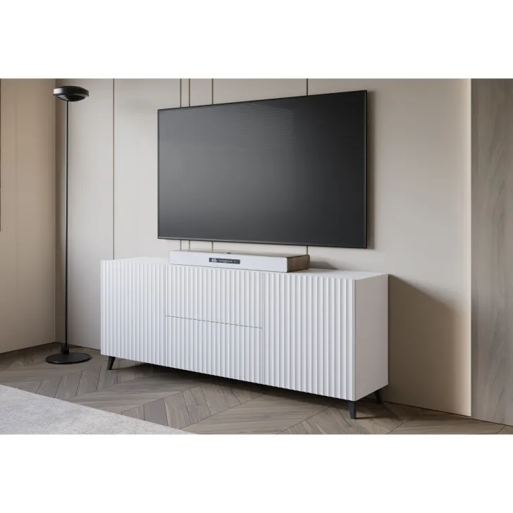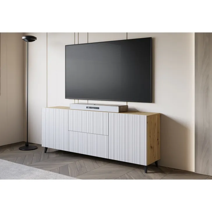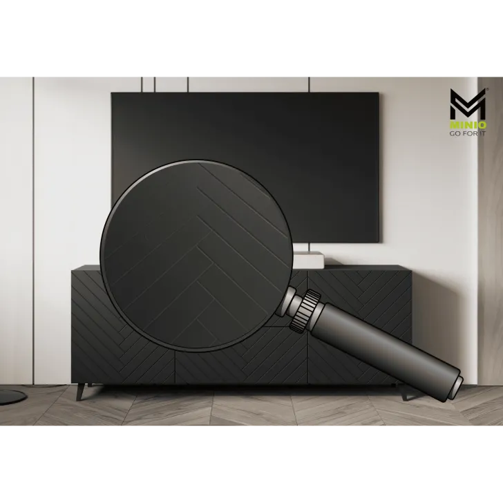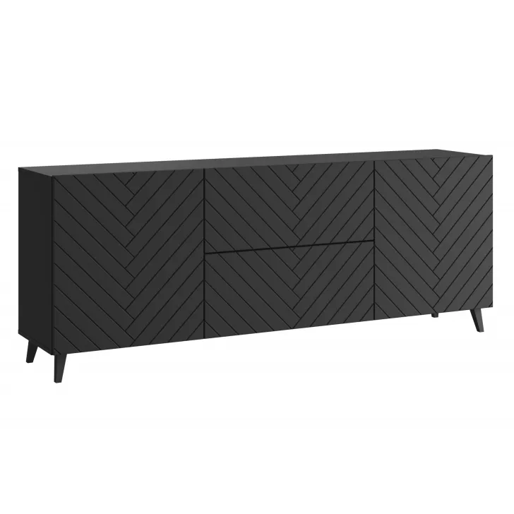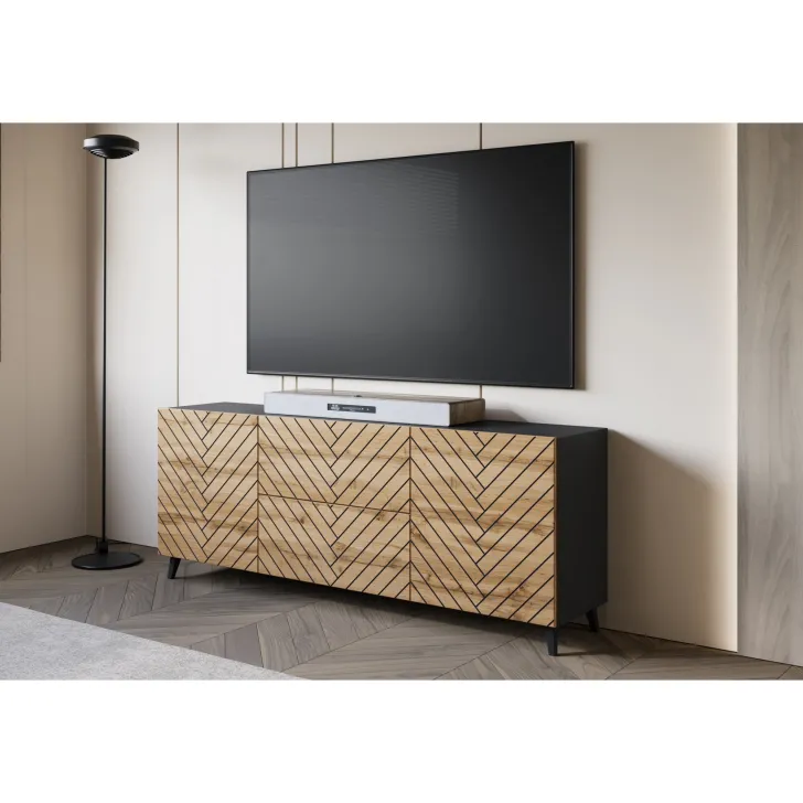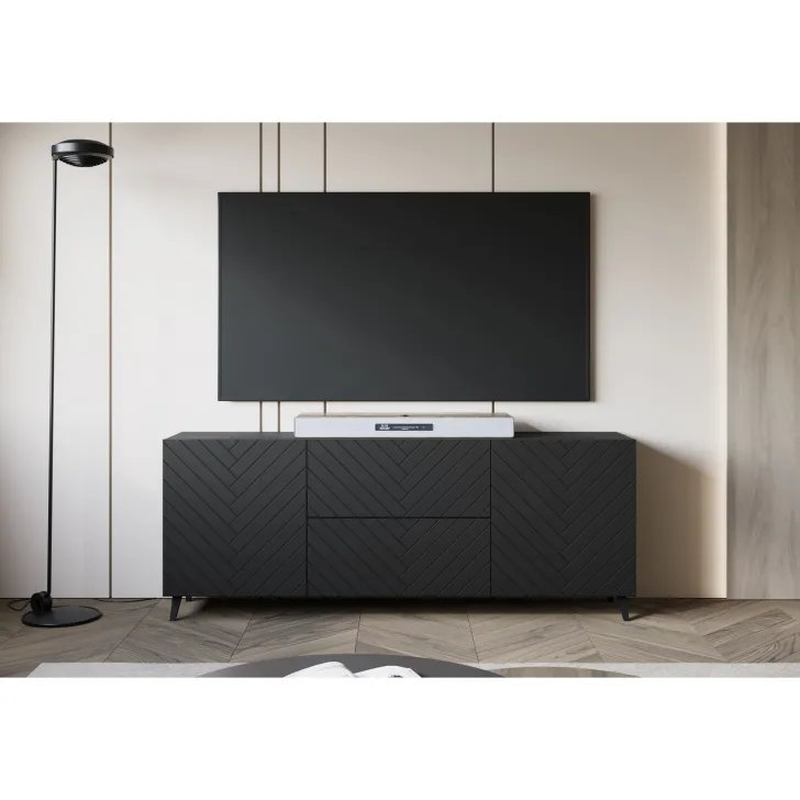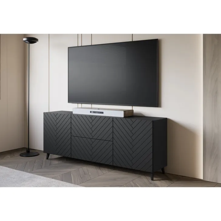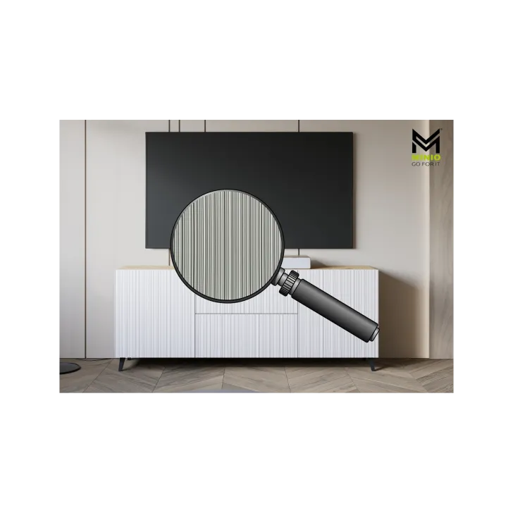 Entscheiden Sie sich für die Kommode "LOKET" 180 cm mit MDF-Fronten im 3D-Muster und verleihen Sie Ihrem Zuhause moderne Klasse und stilvolle Eleganz.