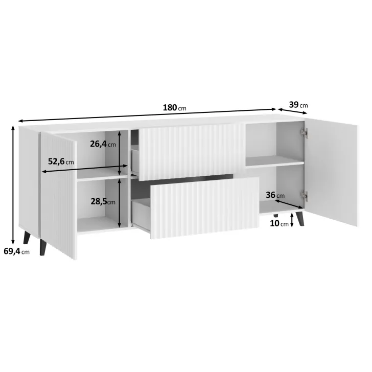 Maße der Kommode "LOKET" 180 cm mit MDF-Fronten im 3D-Muster: