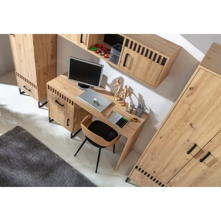Der Schreibtisch MELLE 9 erfüllt all deine Anforderungen – egal, ob du eine zuverlässige Arbeitsstation oder einen praktischen Lernplatz suchst. Sein Konzept basiert auf maximaler Funktionalität – mit großzügiger Arbeitsfläche und viel Stauraum für sämtliches Bürozubehör.