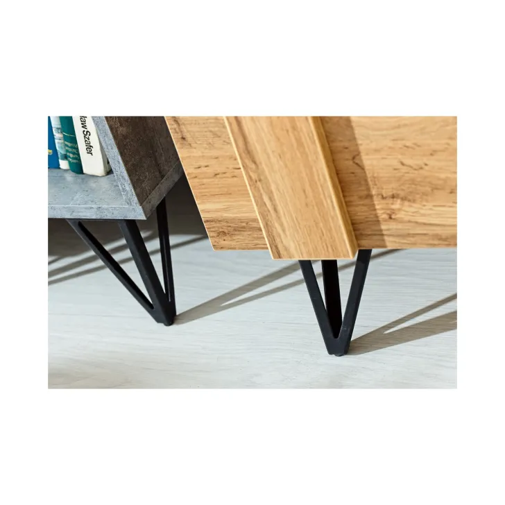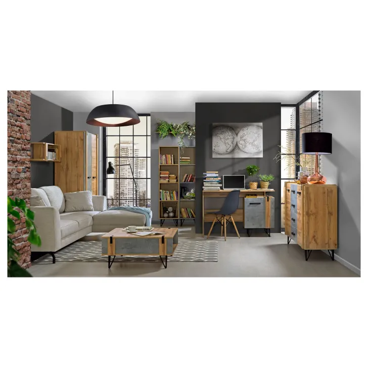 Entdecken Sie unsere neue Empfehlung – die Kommode Milenium 135 cm in Eiche Wotan / Beton Millenium. Diese elegante und stilvolle Kommode mit einer Breite von 135 cm bringt frischen Wind in Ihre Inneneinrichtung. Ihr universeller, moderner Charakter macht sie zur perfekten Ergänzung für Wohnzimmer, Schlafzimmer oder auch Büroräume. Die Kommode Milenium ist ideal für alle, die Funktionalität mit modernem Design kombinieren möchten. Ausgestattet mit zwei Türen, hinter denen sich Einlegeböden verbergen, sowie vier geräumigen Schubladen, bietet sie jede Menge Stauraum für verschiedenste Gegenstände. Dank der Verwendung hochwertiger Materialien ist die Konstruktion stabil und langlebig. Hier sind einige der Merkmale, die unsere Kommode Milenium besonders auszeichnen: