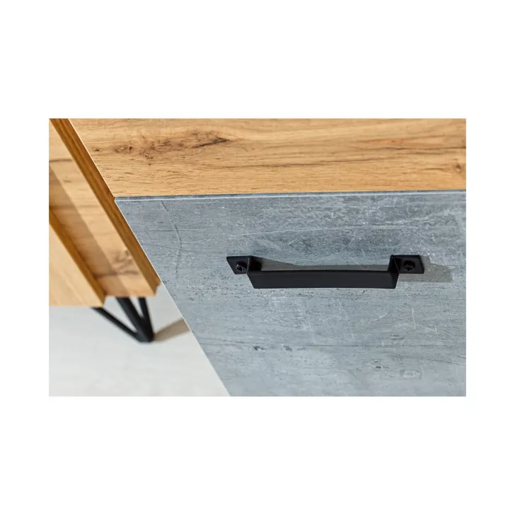 Setzen Sie ein stilvolles Statement in Ihrem Zuhause mit der Kommode Milenium 90 cm in Eiche Wotan / Beton Millenium. Diese hochwertige Kommode bietet nicht nur zusätzlichen Stauraum, sondern verleiht Ihren Räumen auch einen ganz besonderen Charme. Ob im Wohnzimmer oder im Schlafzimmer – die Kommode Milenium ist stets eine ausgezeichnete Wahl.