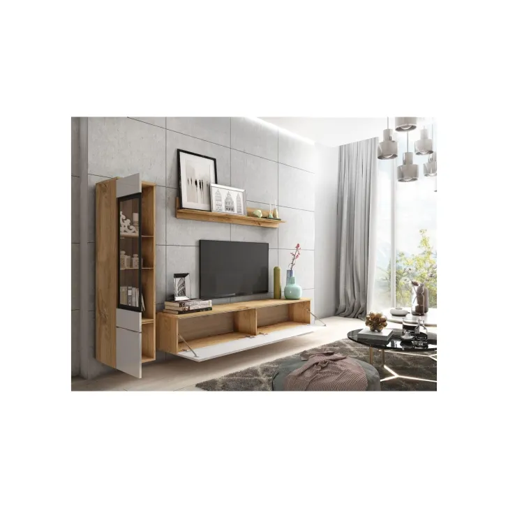 Wählen Sie das moderne weiße Wohnzimmerregal - Veve I, das Ihr Wohnzimmer zu einem Ort voller Stil und Funktionalität macht!