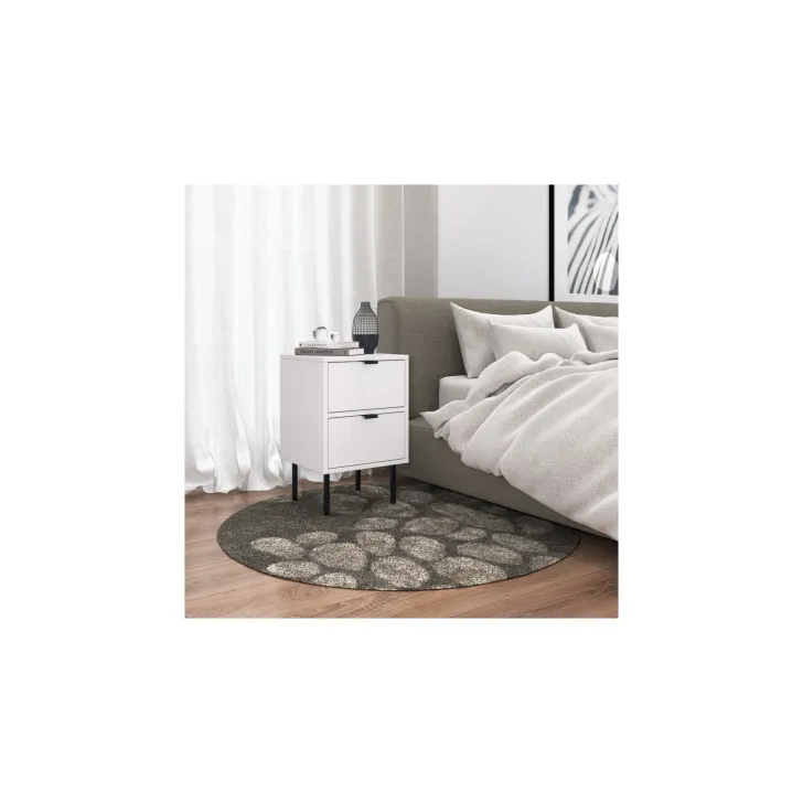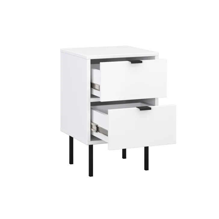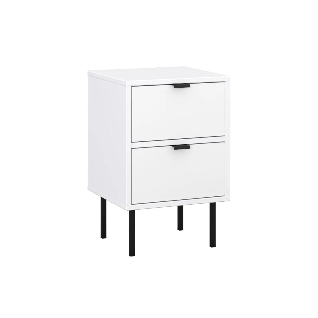 Nachttisch „KOIDO“, zwei Schubladen, schwarze Elemente, weiße Farbe