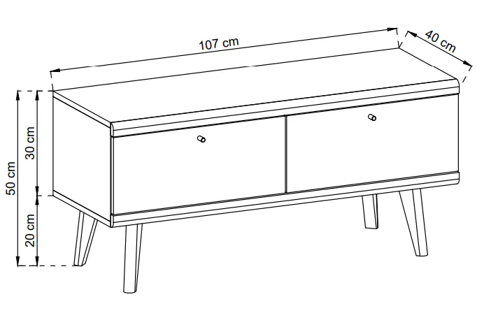 Abmessungen des TV-Schranks OSLO 107 cm in Eiche Riviera/Weiß: