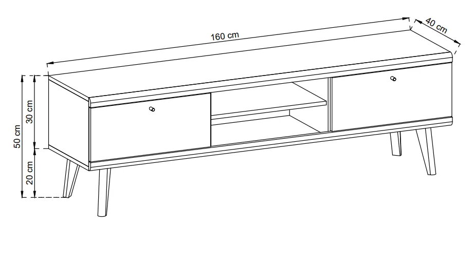 Der TV-Schrank OSLO verfügt über zwei geräumige Fächer mit stilvollen Klapptüren, die Ordnung schaffen und alle notwendigen Accessoires dezent verstecken. Ein weiterer Vorteil ist die großzügige offene Ablage, ideal für Receiver, Spielkonsolen oder andere Multimedia-Geräte.