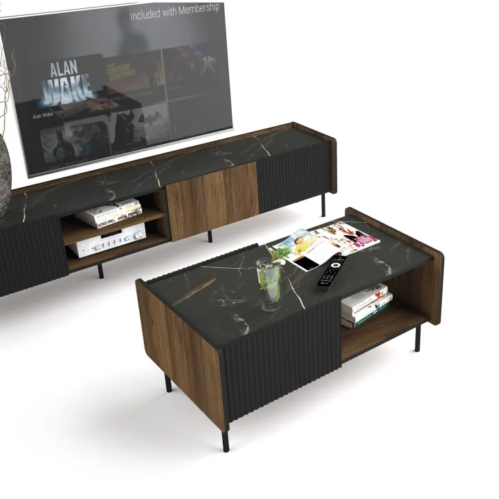 Pereto 11 ist ein Couchtisch mit einzigartigem Stil. Sein Design kombiniert moderne Formen mit zeitloser Eleganz und fügt sich somit harmonisch in jede Wohnzimmergestaltung ein – egal ob minimalistisch oder klassisch. Dieser Tisch wird schnell zum Mittelpunkt, um den Sie das gesamte Interieur stilvoll gestalten können.
