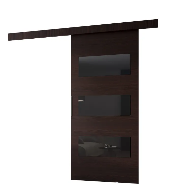 Die Schiebetüren "CLEAN E" sind in verschiedenen Farben erhältlich: Schwarz, Weiß, Grau, Eiche Wotan, Sonoma-Eiche und Wenge. Verfügbare Türbreiten: 76 cm, 86 cm, 96 cm, 106 cm.