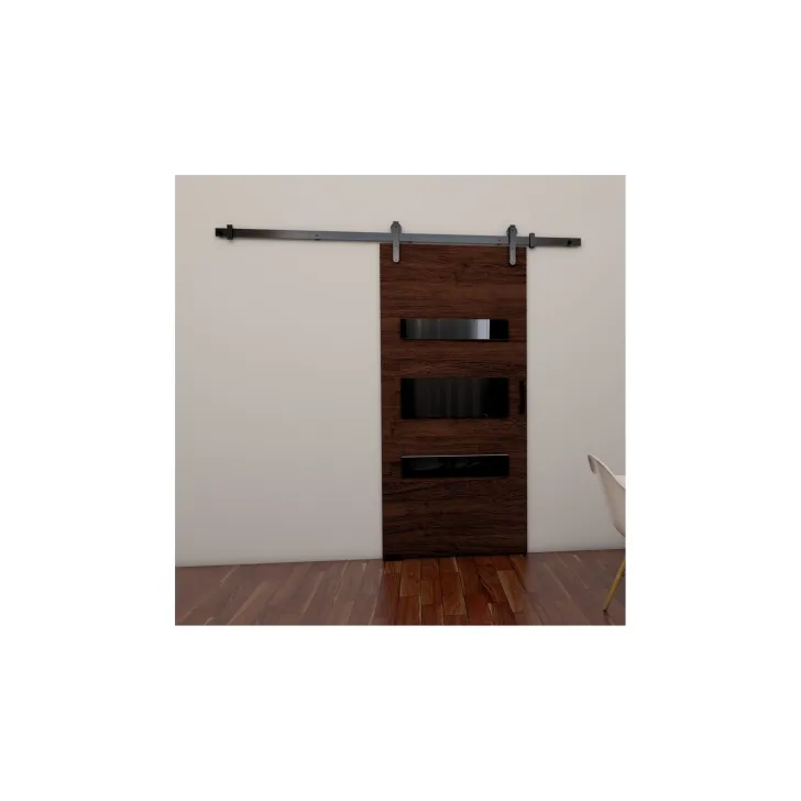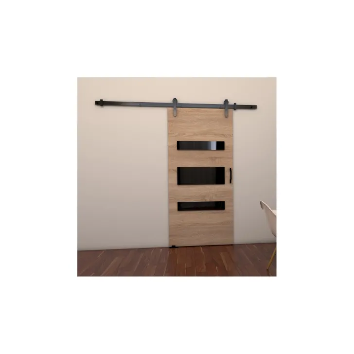 - Die Front der Tür ist mit schwarzen Paneelen (Lacobel-Glas) verziert, die jedem Raum Charakter verleihen