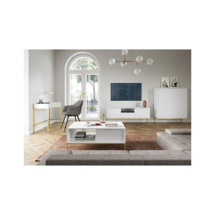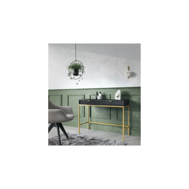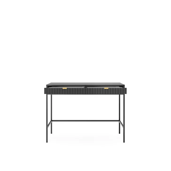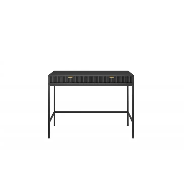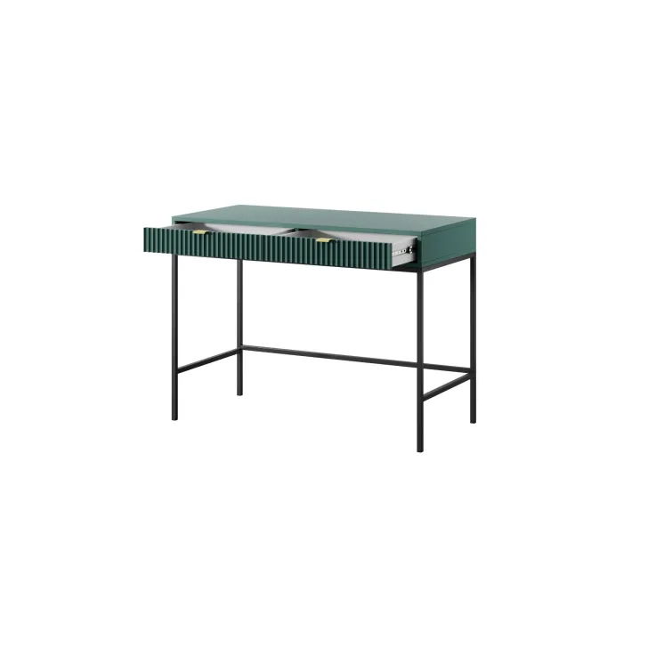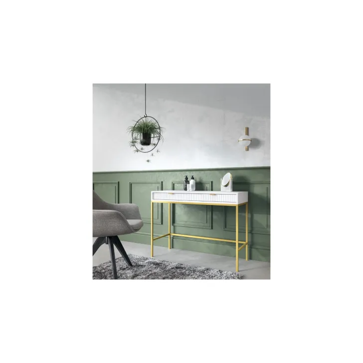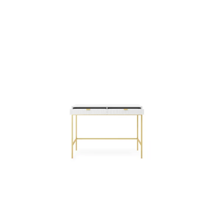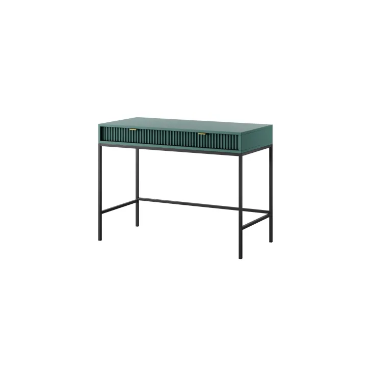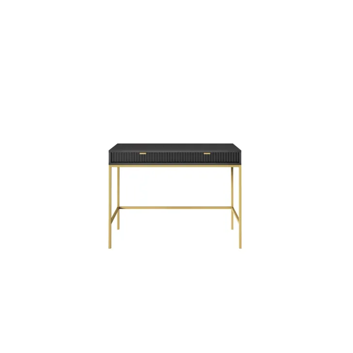 Entdecken Sie den faszinierenden Schminktisch NOVA – eine perfekte Kombination aus Stil, Funktionalität und Langlebigkeit. Dieses moderne Möbelstück lässt sich mühelos von einem stilvollen Schminktisch in einen funktionalen Schreibtisch verwandeln, was es zur idealen Wahl für Schlafzimmer oder Büro macht. Es handelt sich um ein universelles Möbelstück, das sich Ihrem Geschmack und Ihren Bedürfnissen anpassen lässt. Dank der Möglichkeit, Griffe und Beinfarben individuell zu gestalten, können Sie mit dem Schminktisch NOVA Ihren persönlichen Stil zum Ausdruck bringen. Wählen Sie aus fünf Farben (Weiß, Grau, Schwarz, Grün), zwei Beinfarben (Schwarz, Gold) und zwei Griffvarianten (Gold, Schwarz). Für die Herstellung des Schminktischs NOVA wurden ausschließlich hochwertige Materialien verwendet: