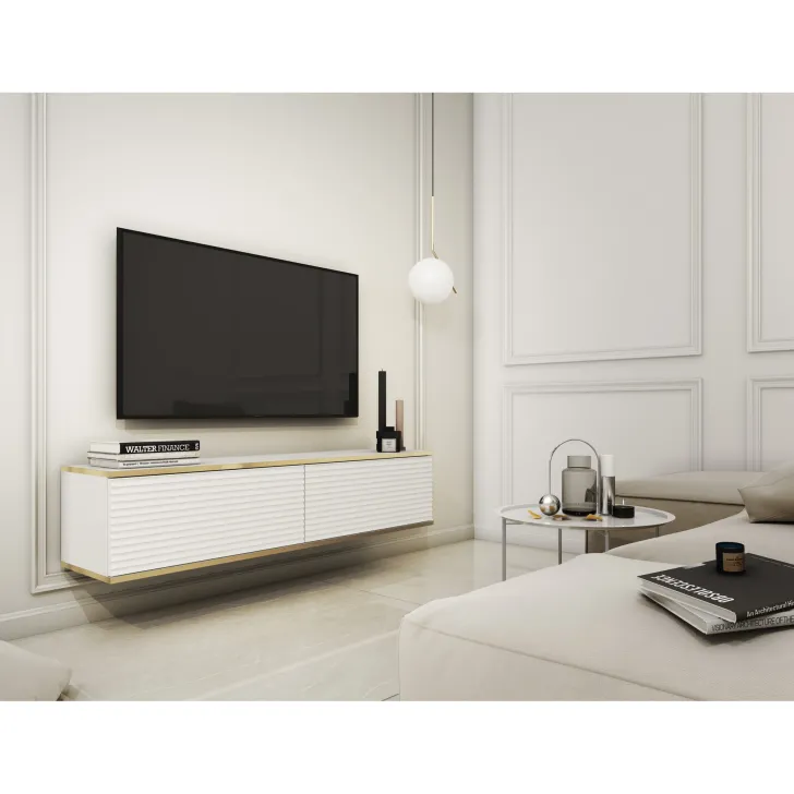 Komfort, Stil und Qualität verleihen Ihrem Zuhause eine besondere Note – mit dem TV-Schrank "ORO" 135 cm mit MDF-Fronten. Dieses luxuriöse Möbelstück ist nicht nur schön, sondern auch praktisch – ideal zur Aufbewahrung Ihrer Unterhaltungselektronik.
