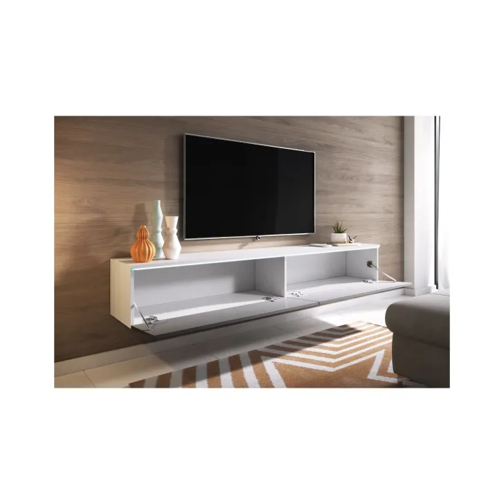 Betonen Sie die Eleganz und den Stil Ihres Wohnzimmers mit dem TV-Schrank "DIDI" 180 cm Weiß / Grau Hochglanz. Dieser moderne TV-Schrank in einer ausgewogenen Farbkombination aus Weiß und Grau mit Hochglanzfinish verleiht jedem Raum einen Hauch von Raffinesse. Gefertigt aus hochwertiger, 15 mm starker, weiß laminierter Platte, überzeugt dieses Möbelstück durch seine ansprechende Optik, Stabilität und Langlebigkeit.