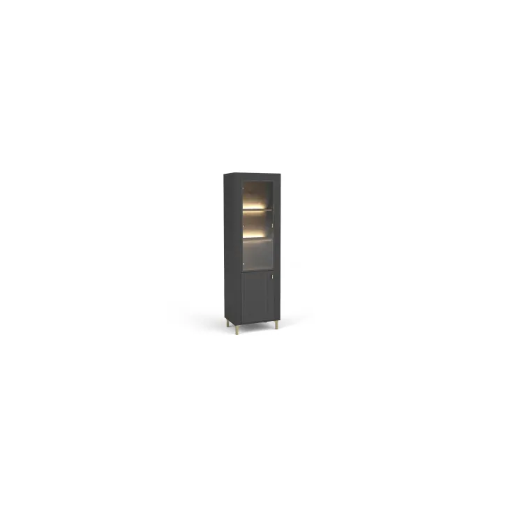 - Feine dekorative Elemente, das holzfarbene Innenleben und das durchdachte Design der Vitrine harmonieren mit jeder Einrichtung – ob in Schwarz, Weiß oder Kaschmirfarbe.
